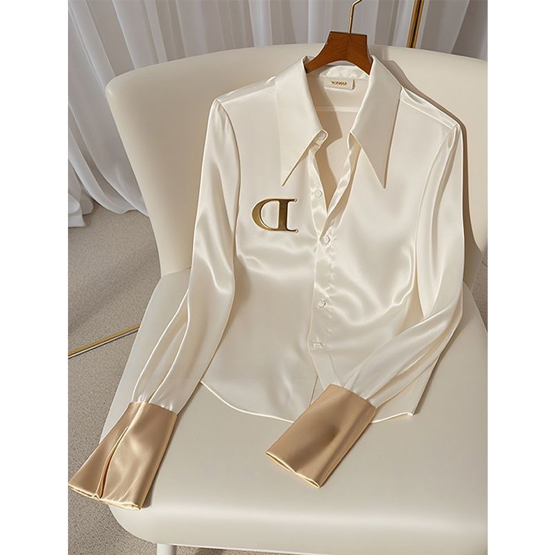 프랑스 스타일 라이트 럭셔리 화이트 아세트산 새틴 셔츠 여성 디자인 센스 틈새 독특한 세련된 외국 스타일 하이 엔드 탑 봄과 가을