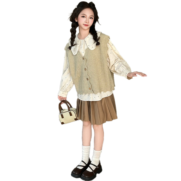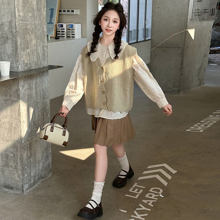 여자 스웨터 조끼 세트 2025 새로운 여자 유행 니트웨어 어린이 가을 캐주얼 투피스 유행스토어 가기