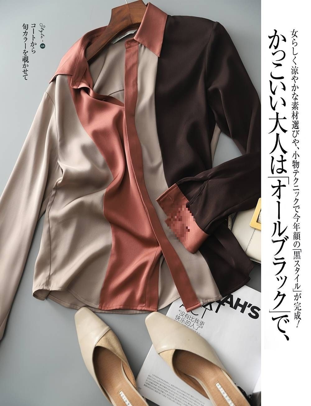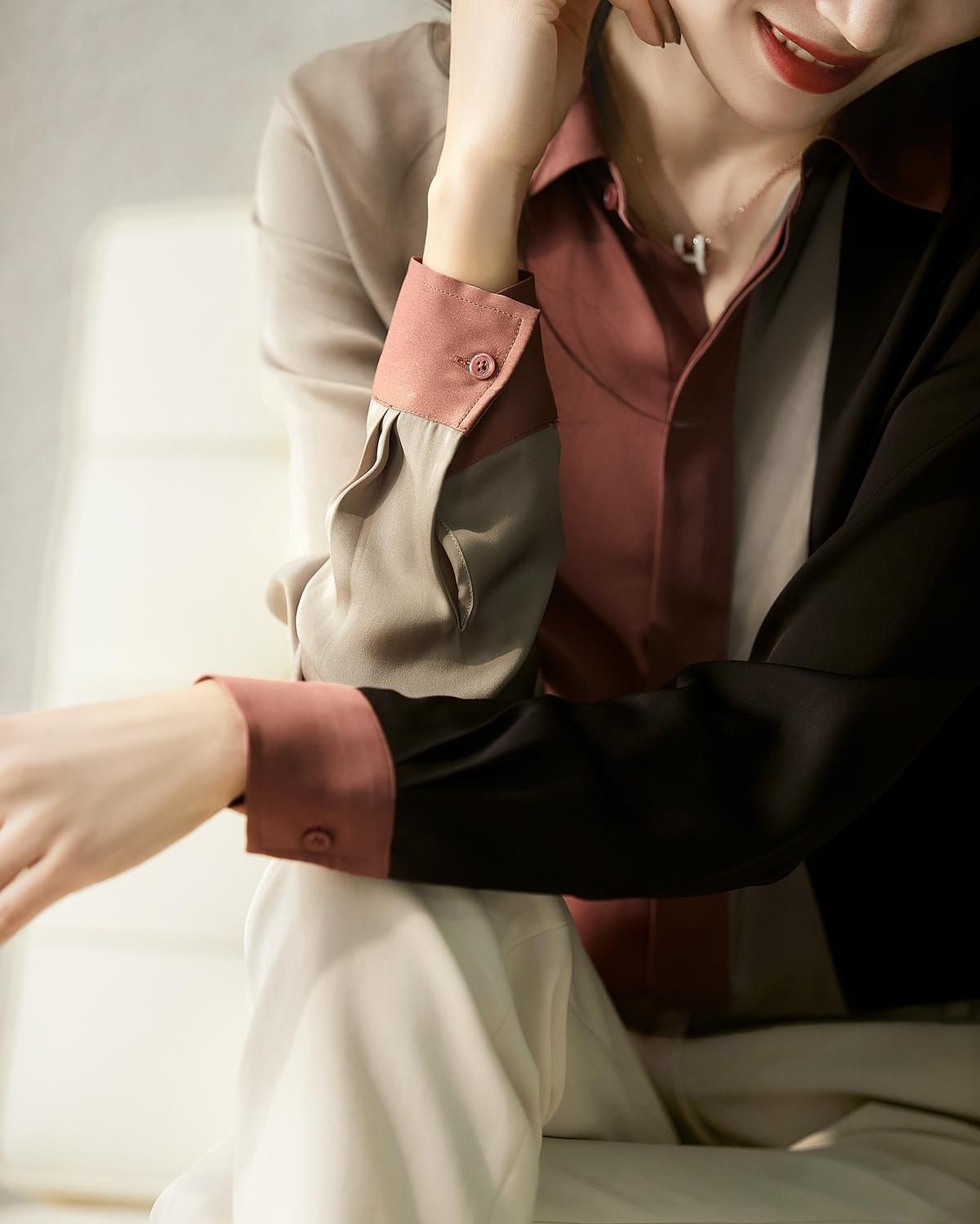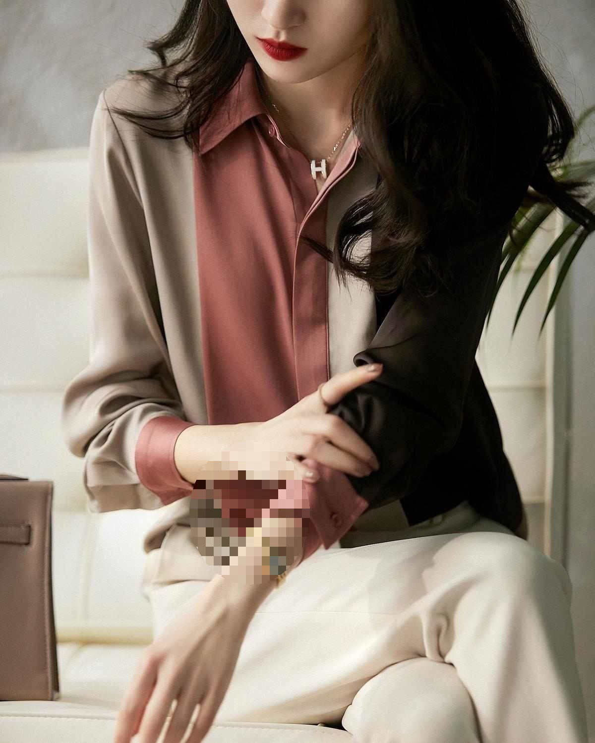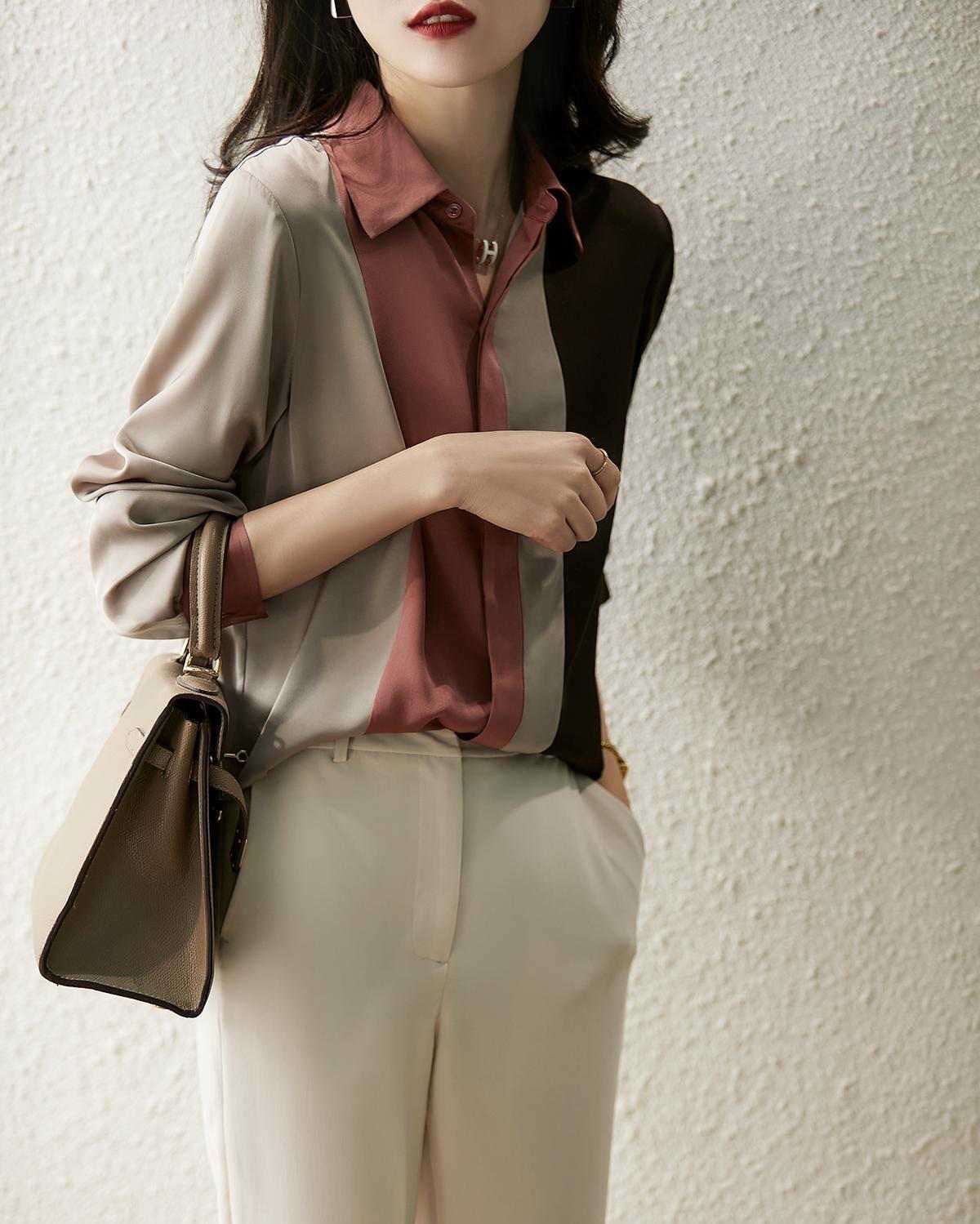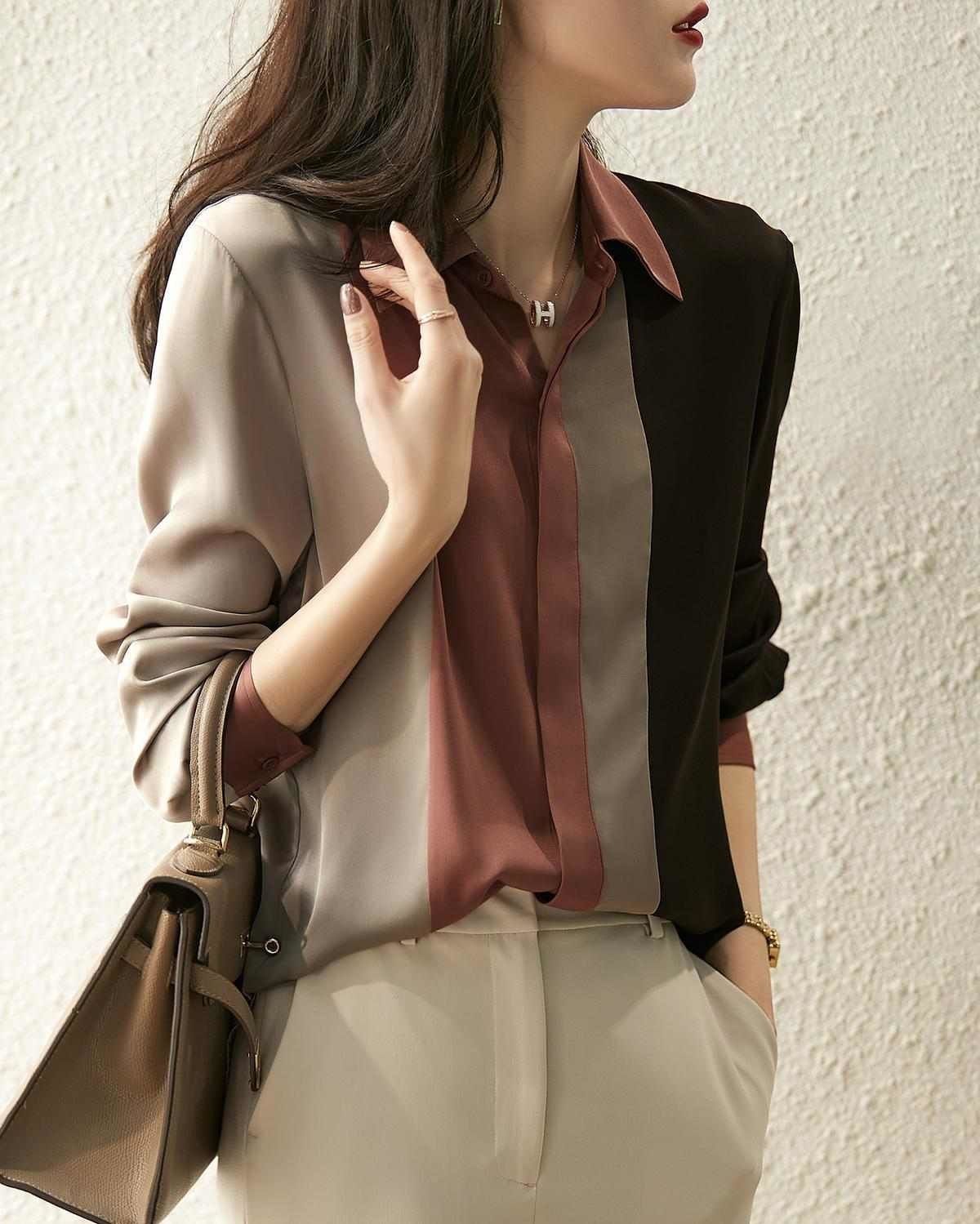 컬러 블록 셔츠 긴팔 여성용 가을 새 셔츠 느슨한 서양식 니치 쉬폰 셔츠 여성용 의류 탑스토어 가기