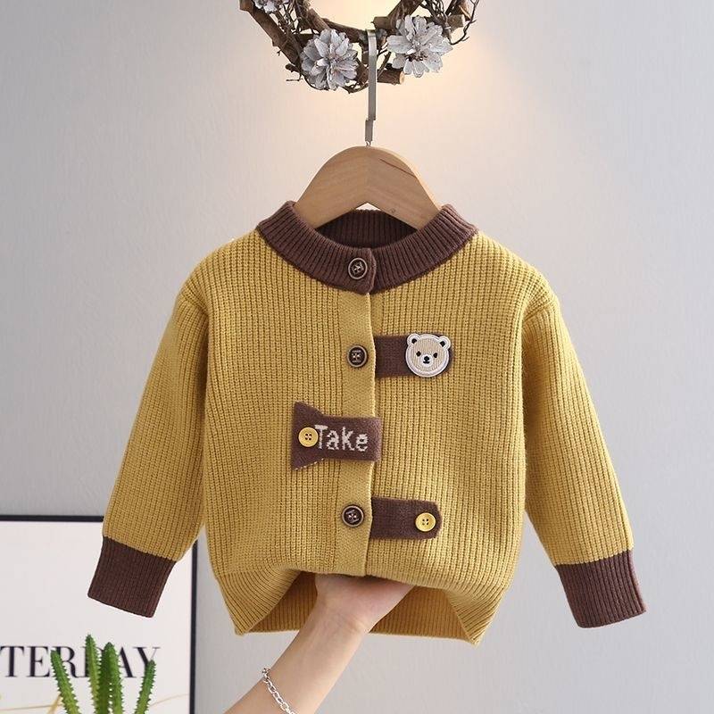 소년의 봄과 가을 코트 어린이 니트웨어 2024 새로운 아기의 서양식 스웨터 카디건 소년의 만화 스웨터스토어 가기