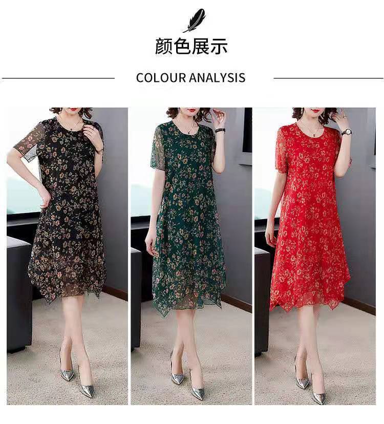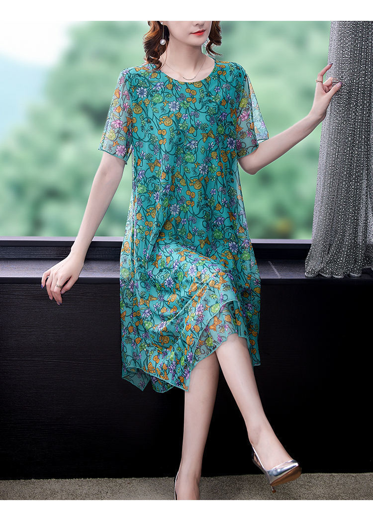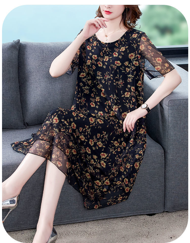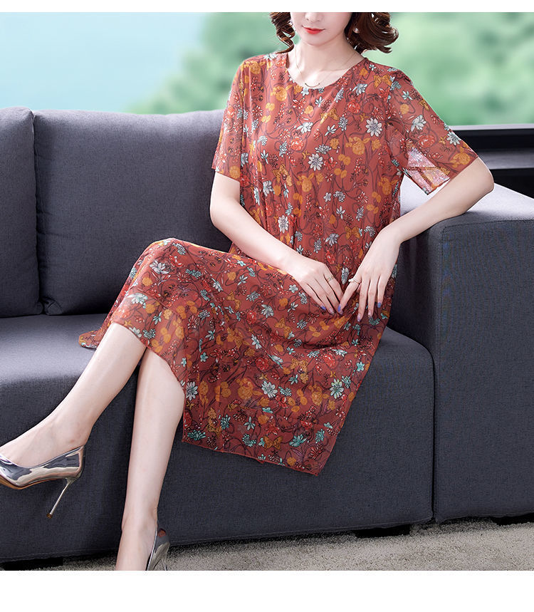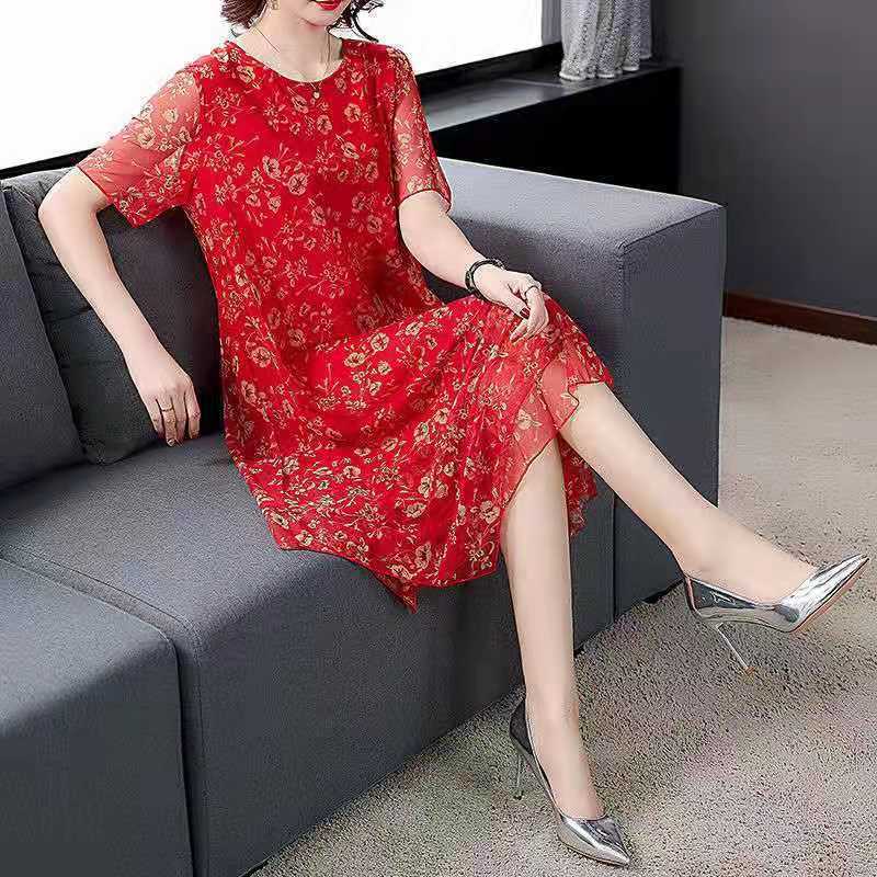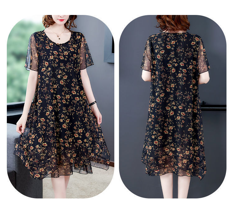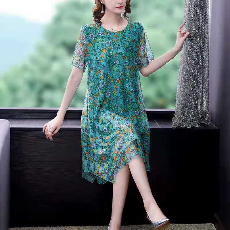 중년 어머니 거즈 원피스 2024 여름 새 플러스 사이즈 여성의 긴 느슨한 배 덮개 슬리밍 스커트스토어 가기