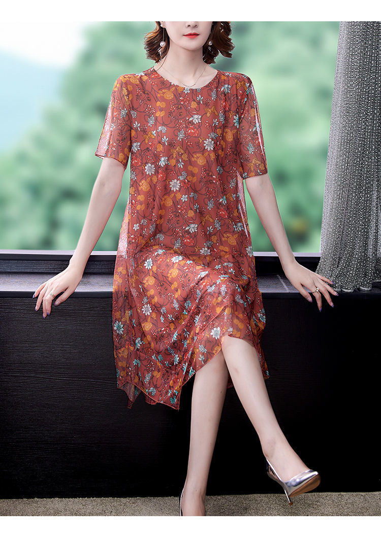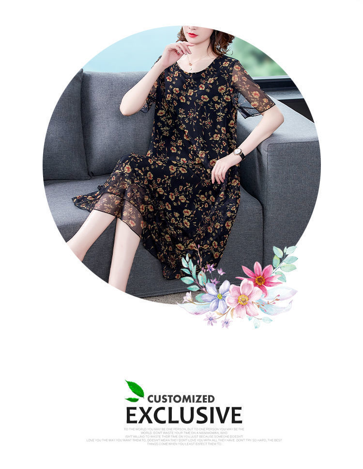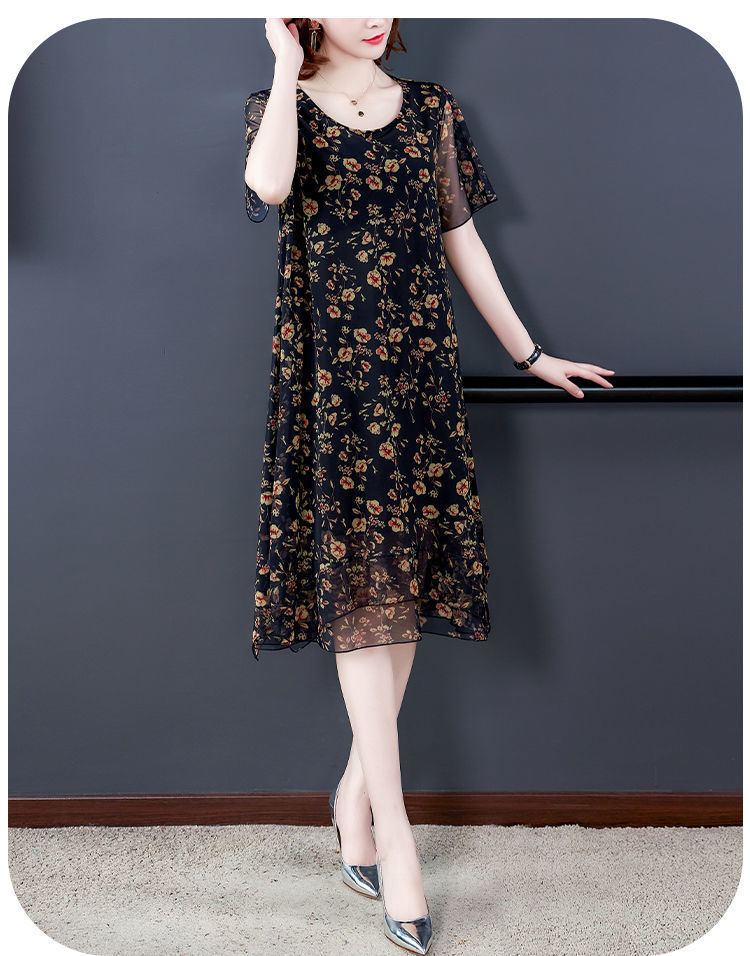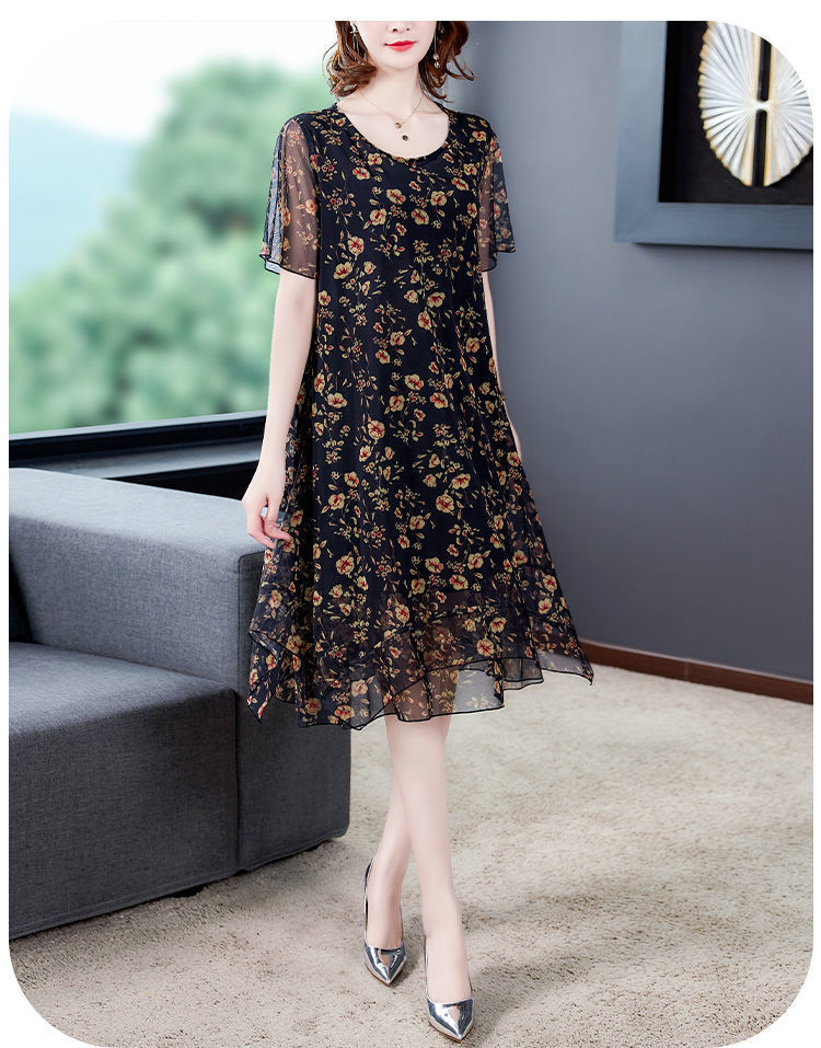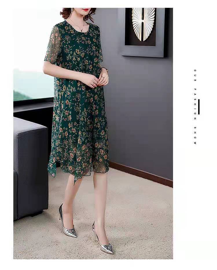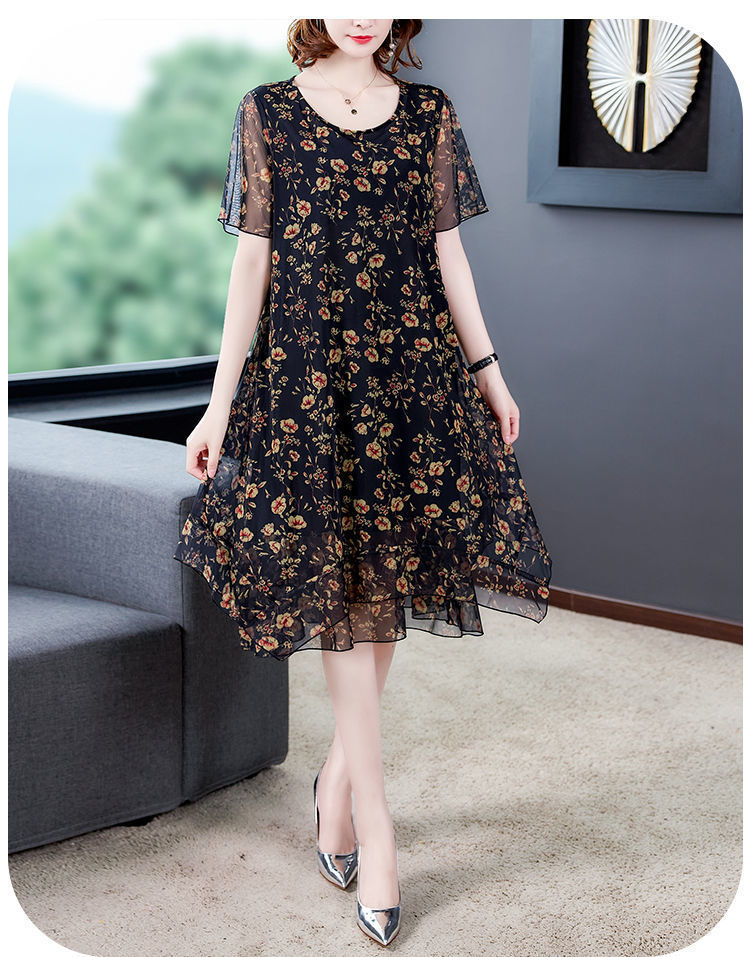 중년 어머니 거즈 원피스 2024 여름 새 플러스 사이즈 여성의 긴 느슨한 배 덮개 슬리밍 스커트스토어 가기
