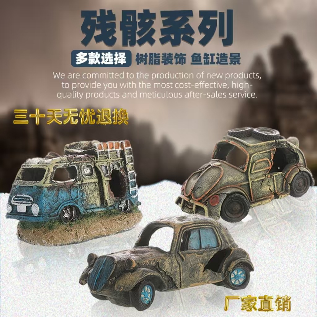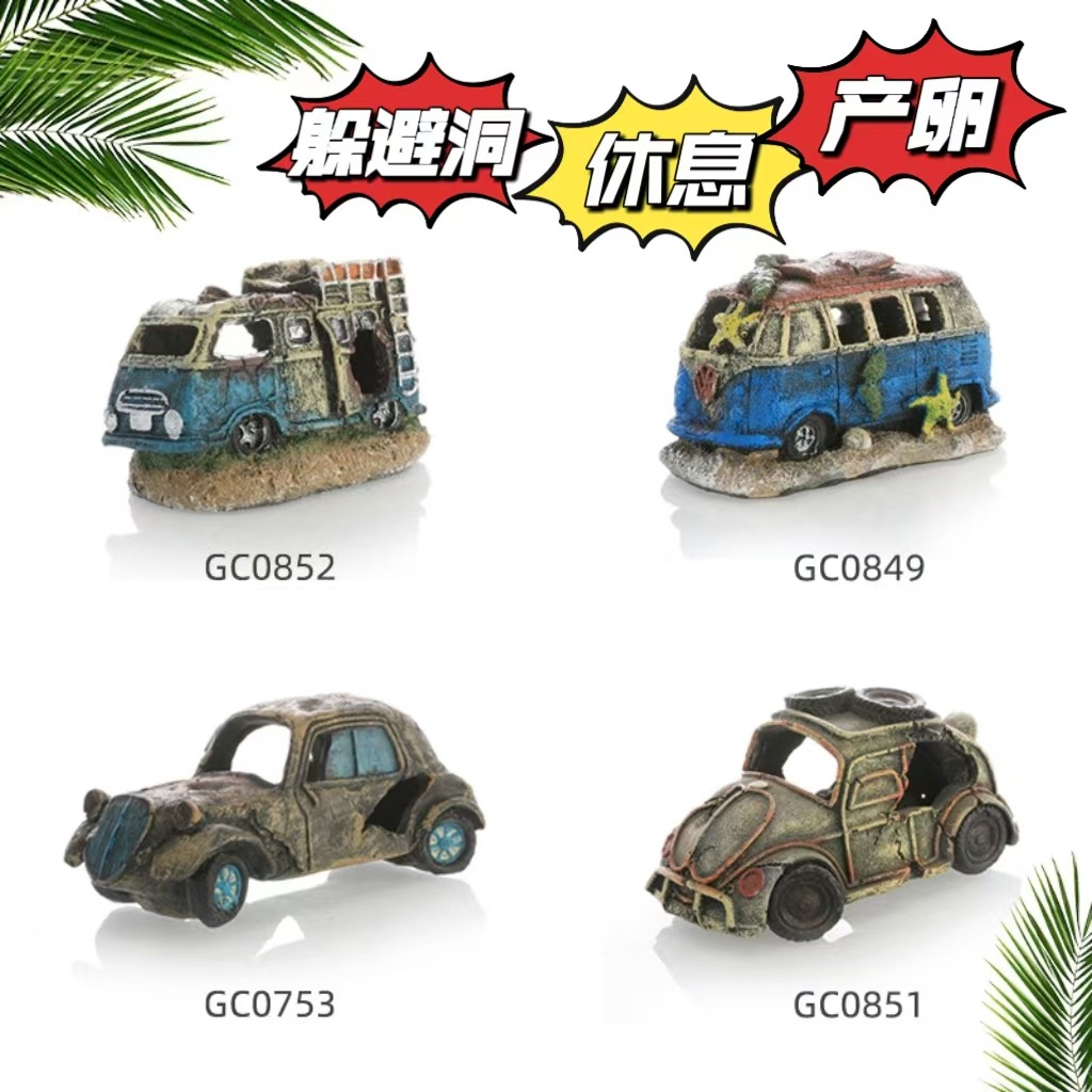 수족관 장식 자동차 폐기물 어항 조경 레진 공예품 물고기와 새우가 숨는 동굴 장식품 물고기 동굴 레트로 스타일스토어 가기