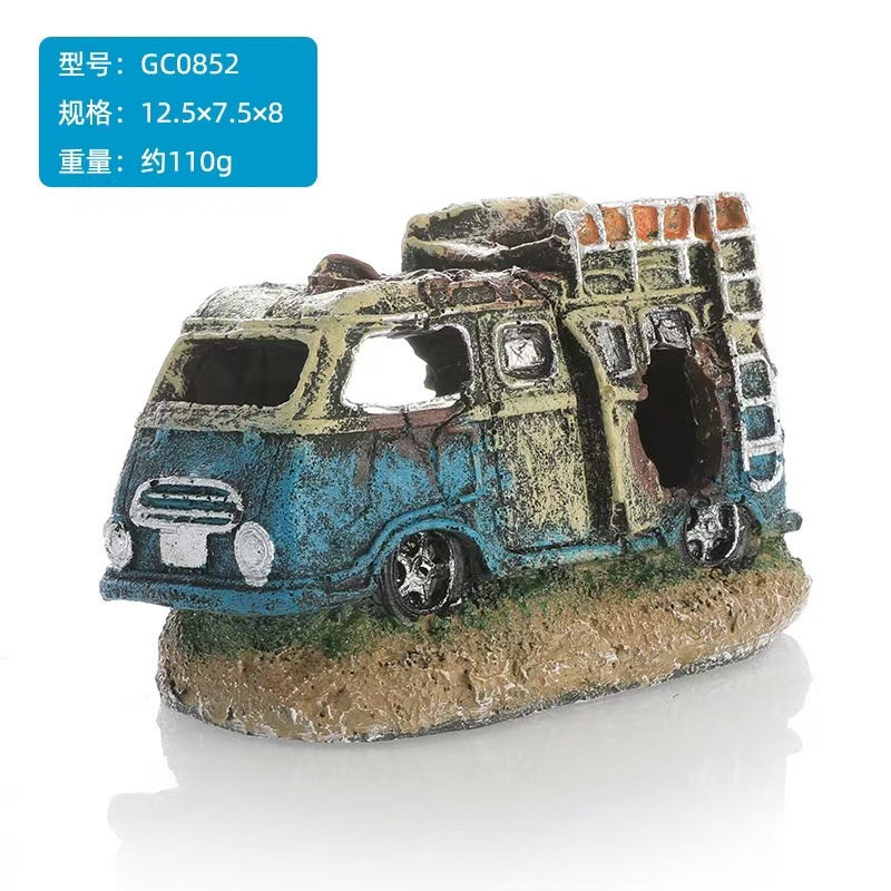 수족관 장식 자동차 폐기물 어항 조경 레진 공예품 물고기와 새우가 숨는 동굴 장식품 물고기 동굴 레트로 스타일