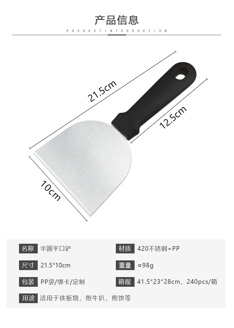 不锈钢半圆平口铲料理铲手抓饼煎饼铲子牛排铲披萨铲铁板烧烹饪铲