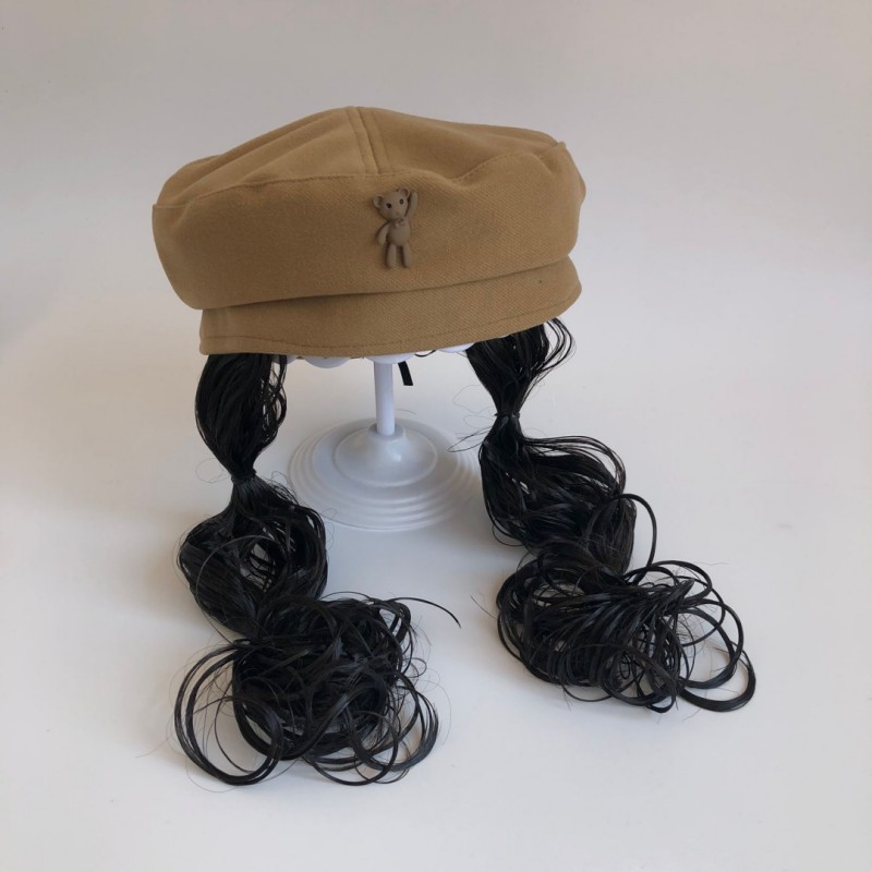 • 커피 - 곰 모직 베레모 긴 머리