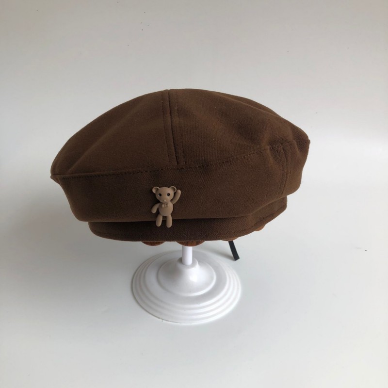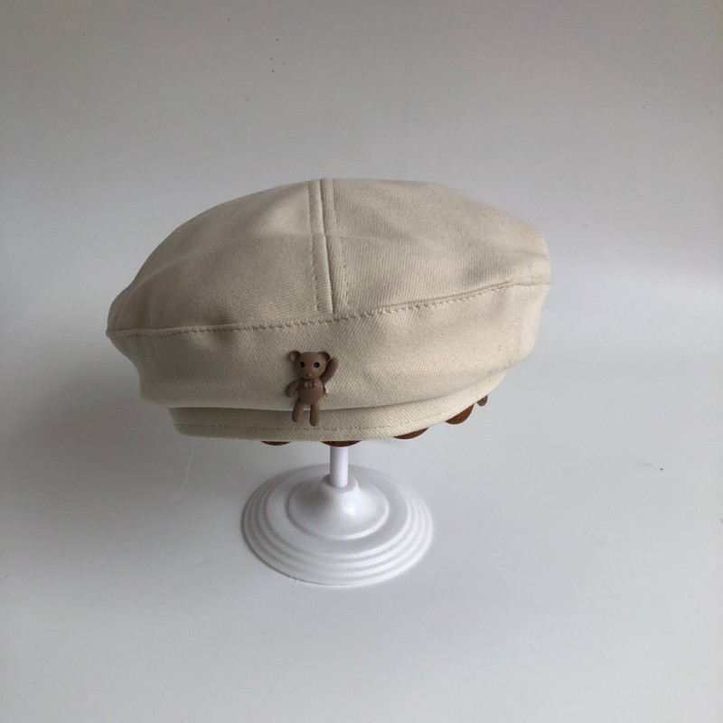 • 카키색 작은 곰 모직 베레모 긴 머리