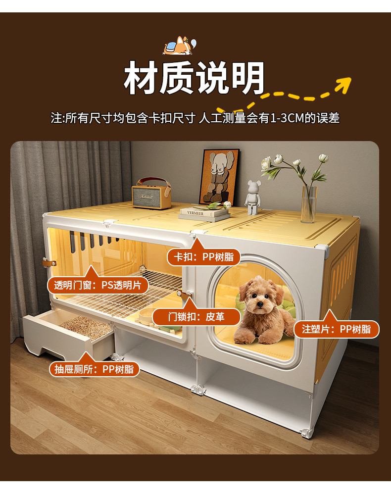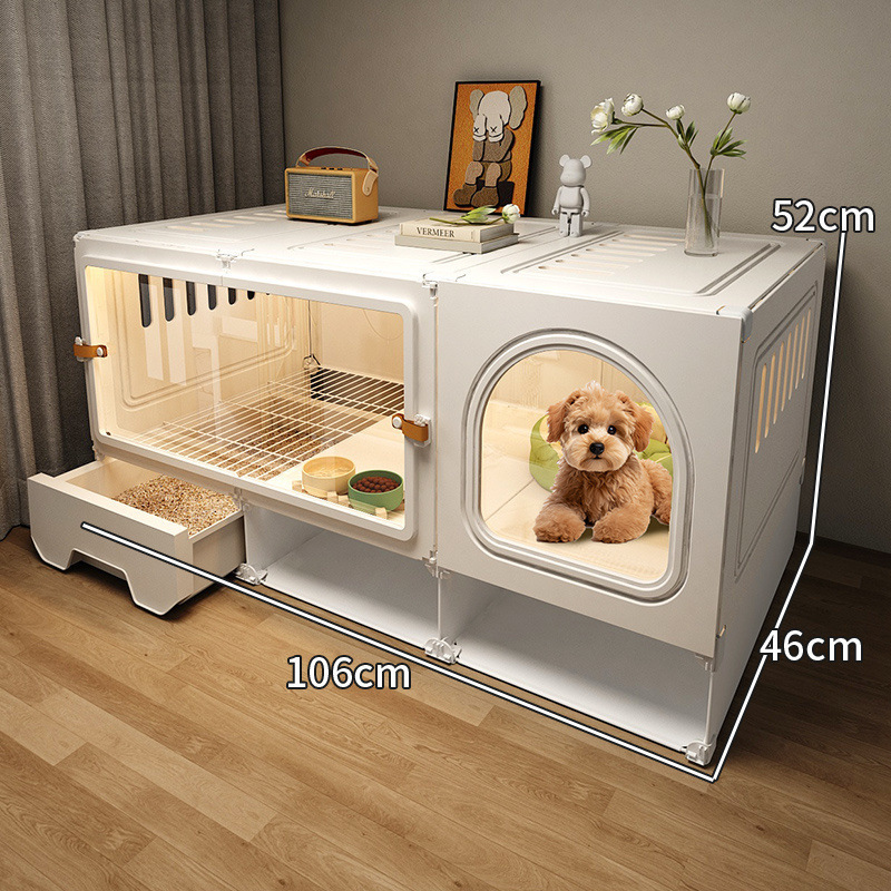 화장실이있는 개 케이지 분리 한 방 홀 건강 애완 동물 케이지 홈 작은 개 테디 코기 개 빌라 제공