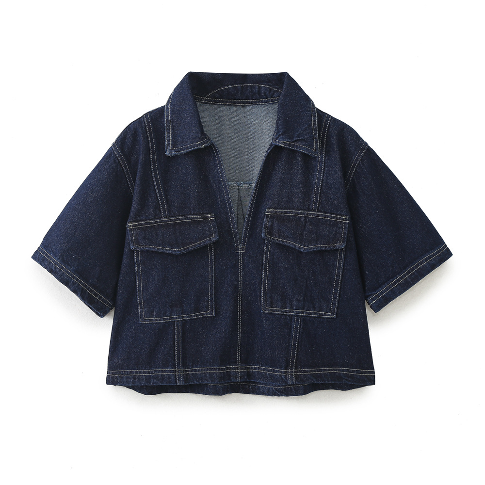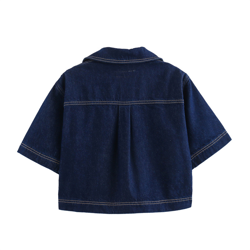 대외 무역 도매 유럽과 미국 스타일의 짧은 데님 셔츠 6164070 더블 브레스트 데님 치마바지 6164068 세트스토어 가기