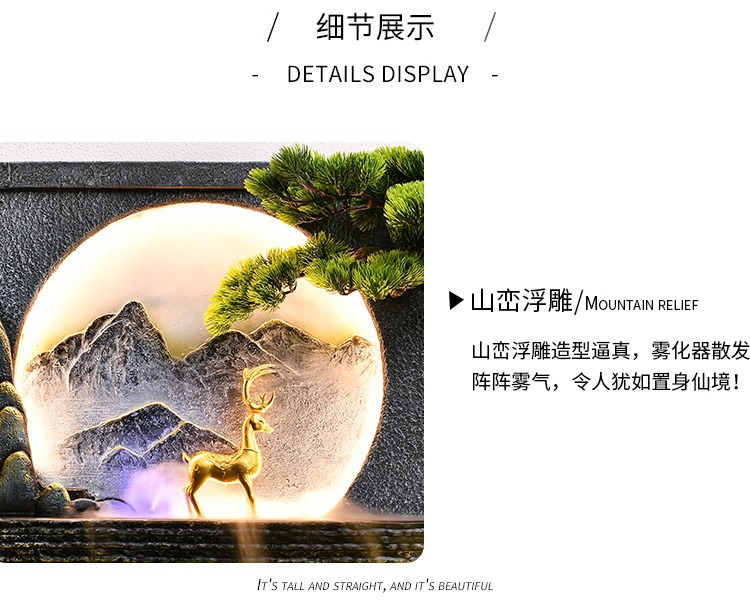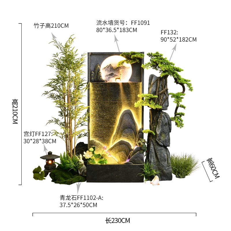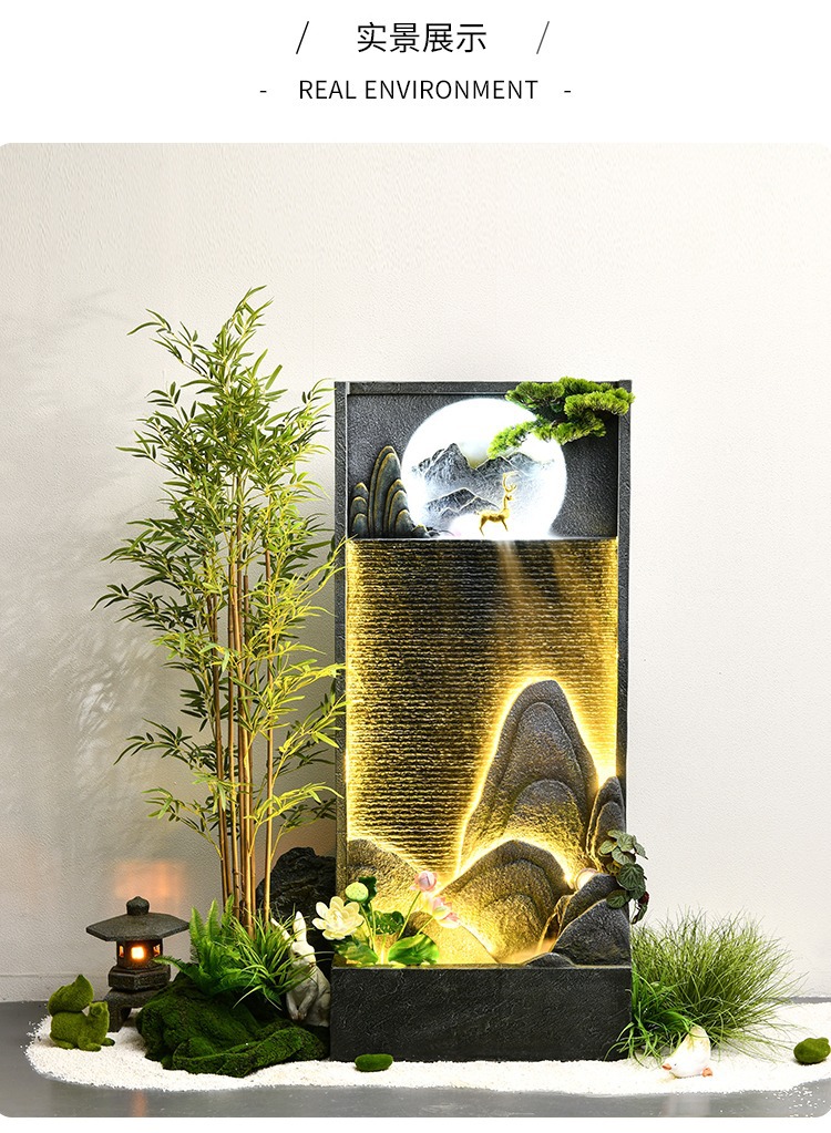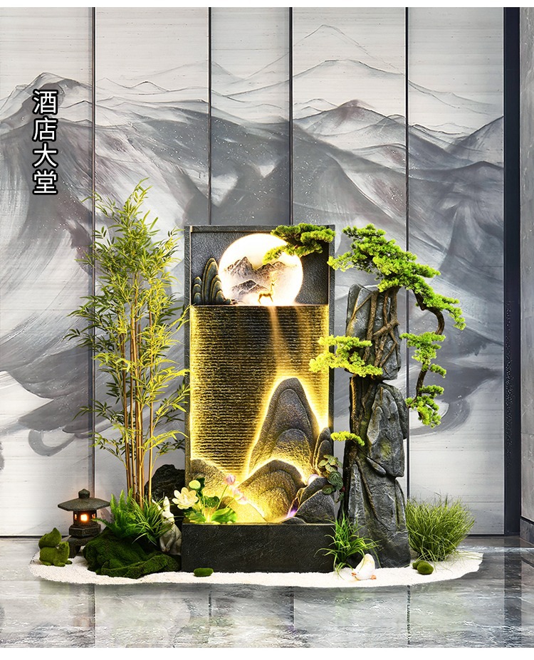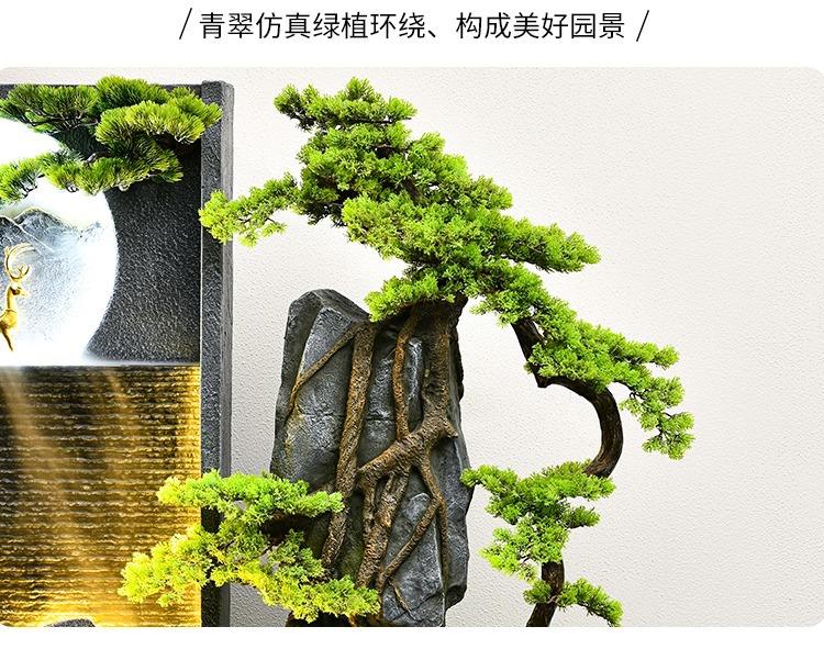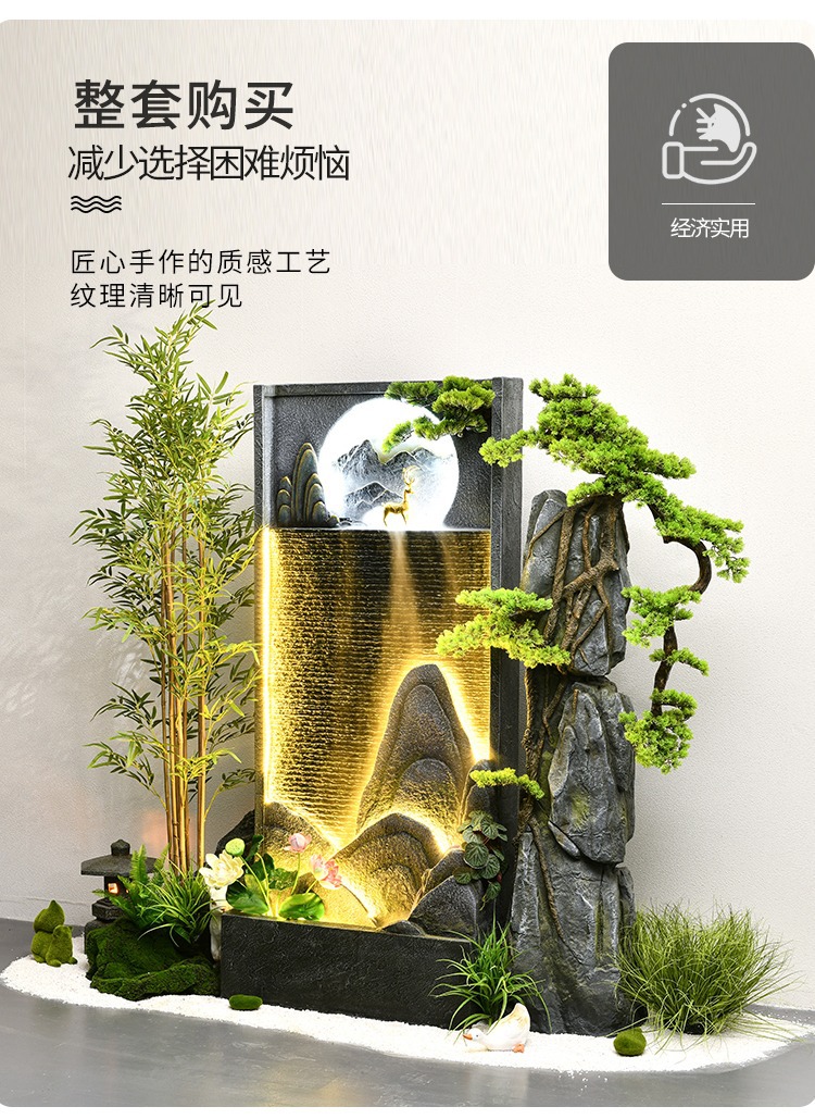 시골 바위 흐르는 물보기 커튼 벽 분수 새로운 중국 스타일 장식 실내 풍경 화면 큰 시뮬레이션 녹색 식물스토어 가기