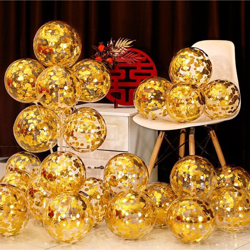• 투명 스팽글 골드 50개 - 풍선 + 매듭기 + 글루건 + 펌프