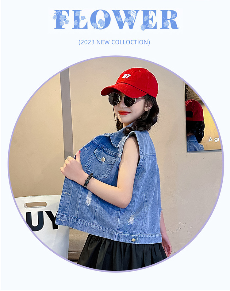 소녀 조끼 외부 유행 공주 스타일 서양식 어린이 데님 탑 얇은 조끼 봄과 가을 어린 소녀스토어 가기