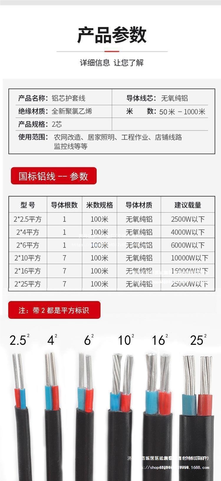 국가 표준 2 코어 알루미늄 코어 가정용 야외 케이블 와이어 4 6 10 16 25 평방 더블 코어 알루미늄 와이어