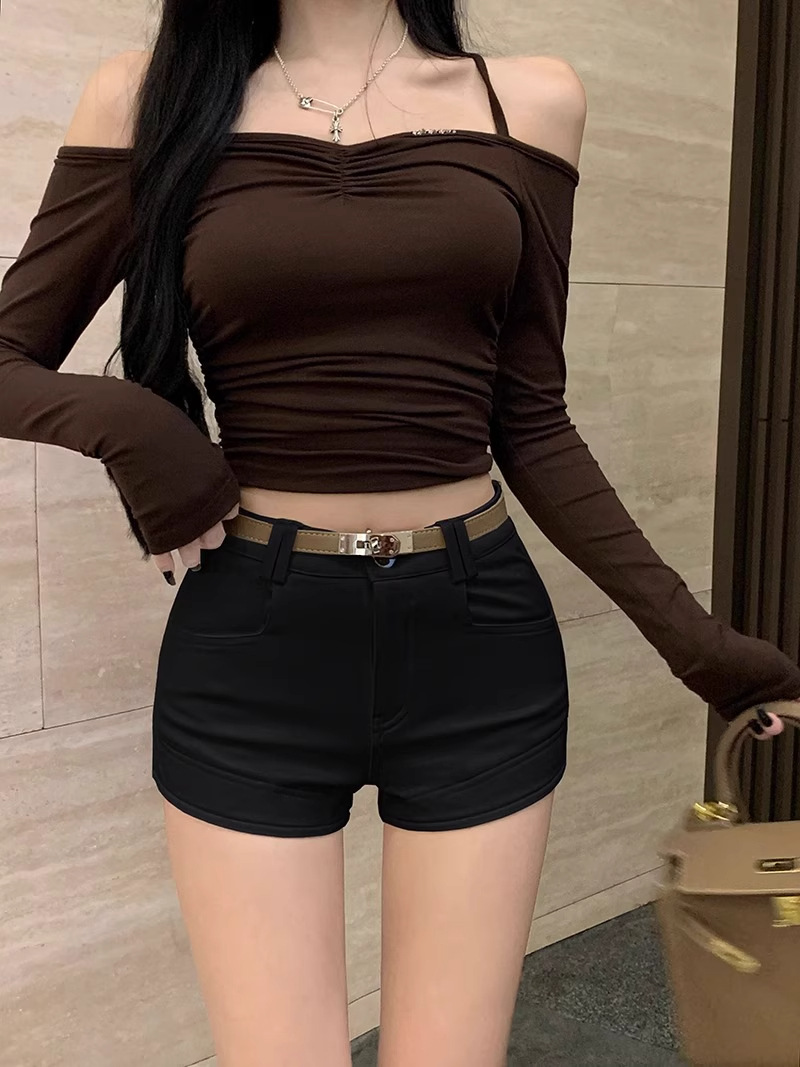 아메리칸 스타일 레트로 캐주얼 반바지 여성 플러스 사이즈 통통한 가을과 겨울 높은 허리 탄성 슬림-적합 핫 힙 바지