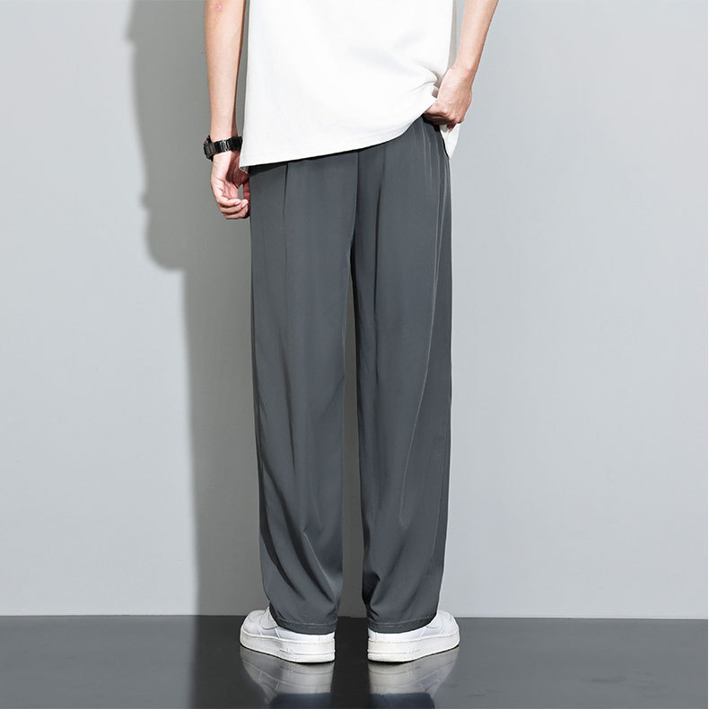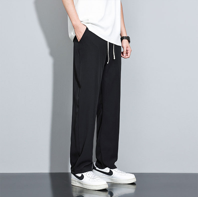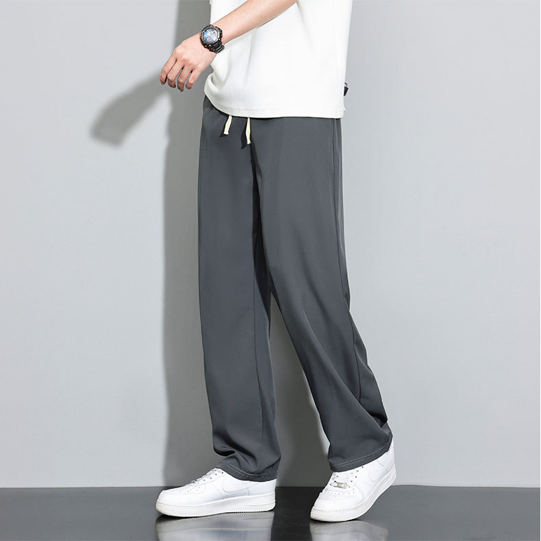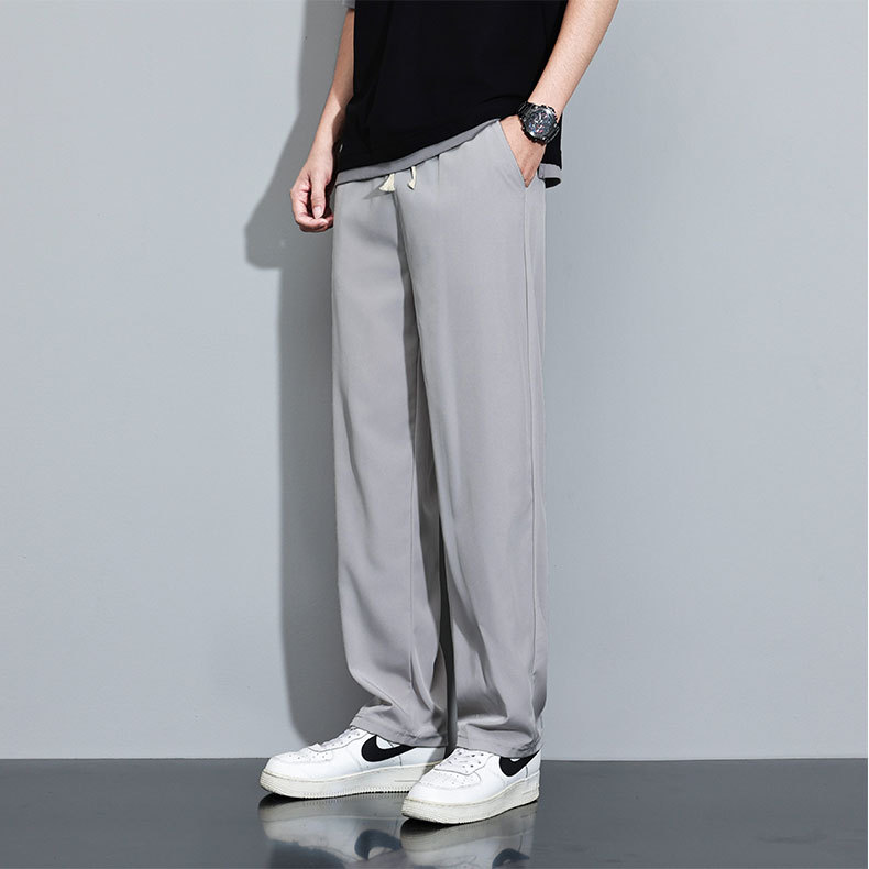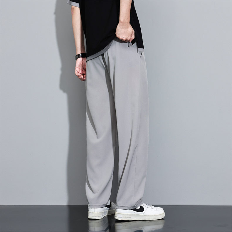 바지 남자 여름 솔리드 컬러 올 매치 캐주얼 스포츠 얇은 느슨한 빠른 건조 아이스 실크 Ins 유행 와이드 레그 발목 길이 바지