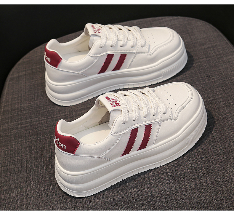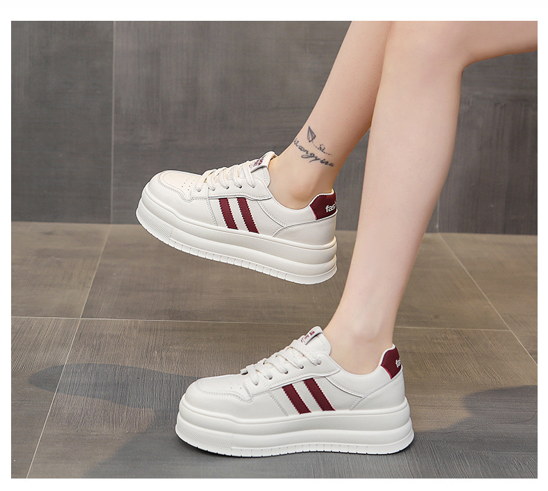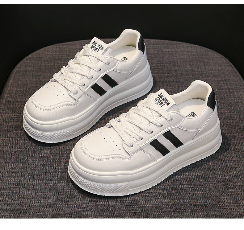 흰색 신발 여성의 두꺼운 단독 상승 보드 신발 2025 봄과 여름 새로운 소프트 솔 피곤하지 않은 발 레저 스포츠 여성 신발 두꺼운 단독