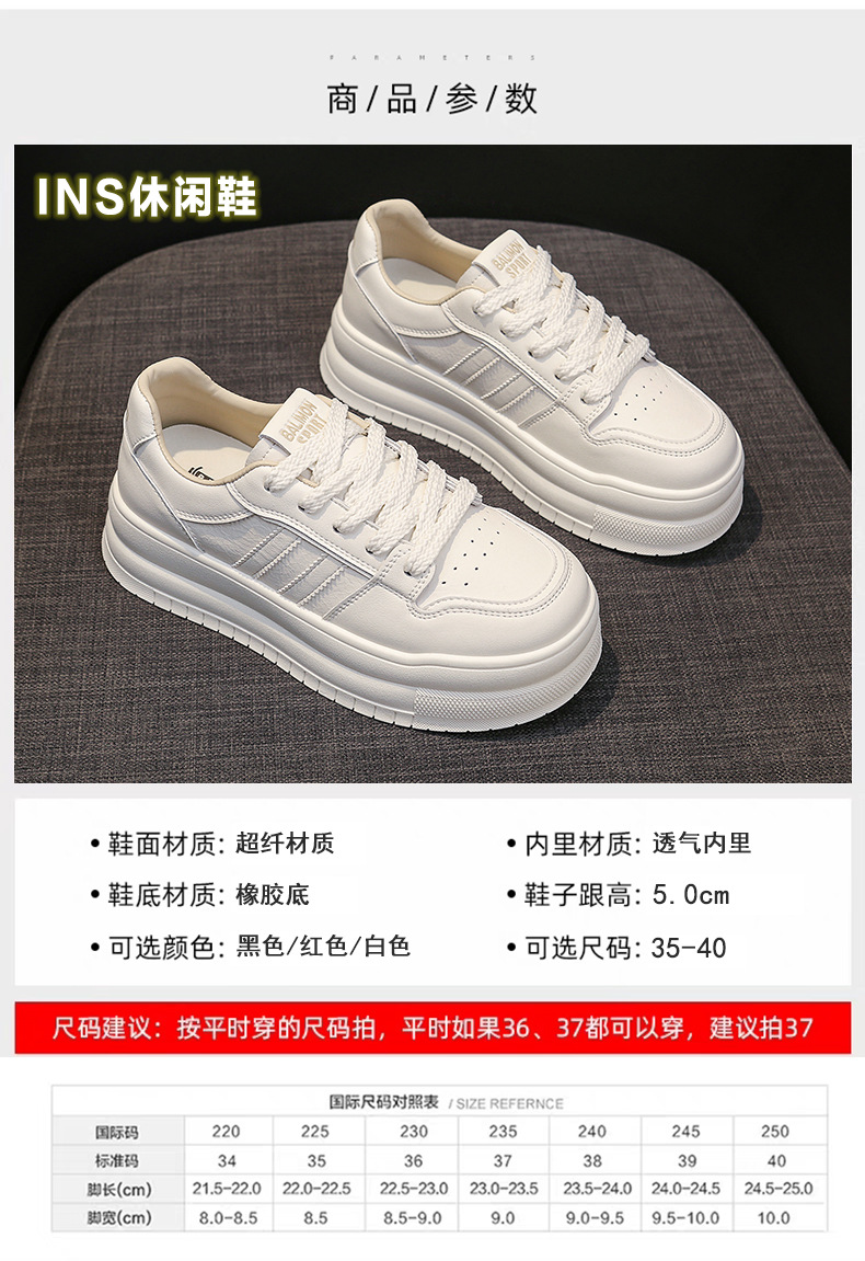 흰색 신발 여성의 두꺼운 단독 상승 보드 신발 2025 봄과 여름 새로운 소프트 솔 피곤하지 않은 발 레저 스포츠 여성 신발 두꺼운 단독스토어 가기