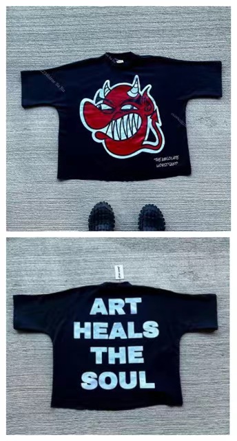 T恤kd is小恶魔涂鸦嘻哈印刷街头短袖T恤男人女人夏天复古宽松