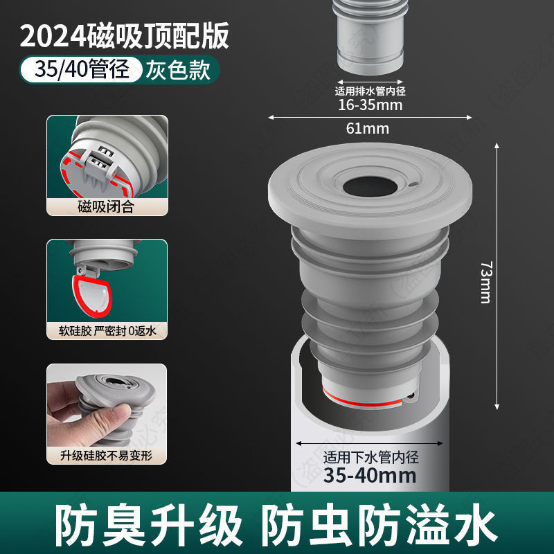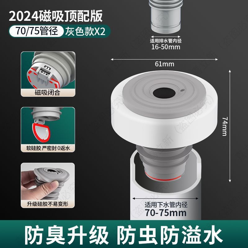 주방 하수관 밀봉 플러그 세탁기 배수 파이프 5075 밀봉 커버 실리콘 링 반향 방지 냄새 차단 유물