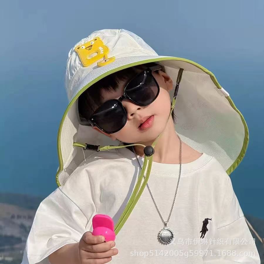 어린이용 챙이 큰 자외선 차단 모자, 여름용 아기 모자, 남아 및 여아용 양산, 어부 모자, 태양 모자, 숄 모자