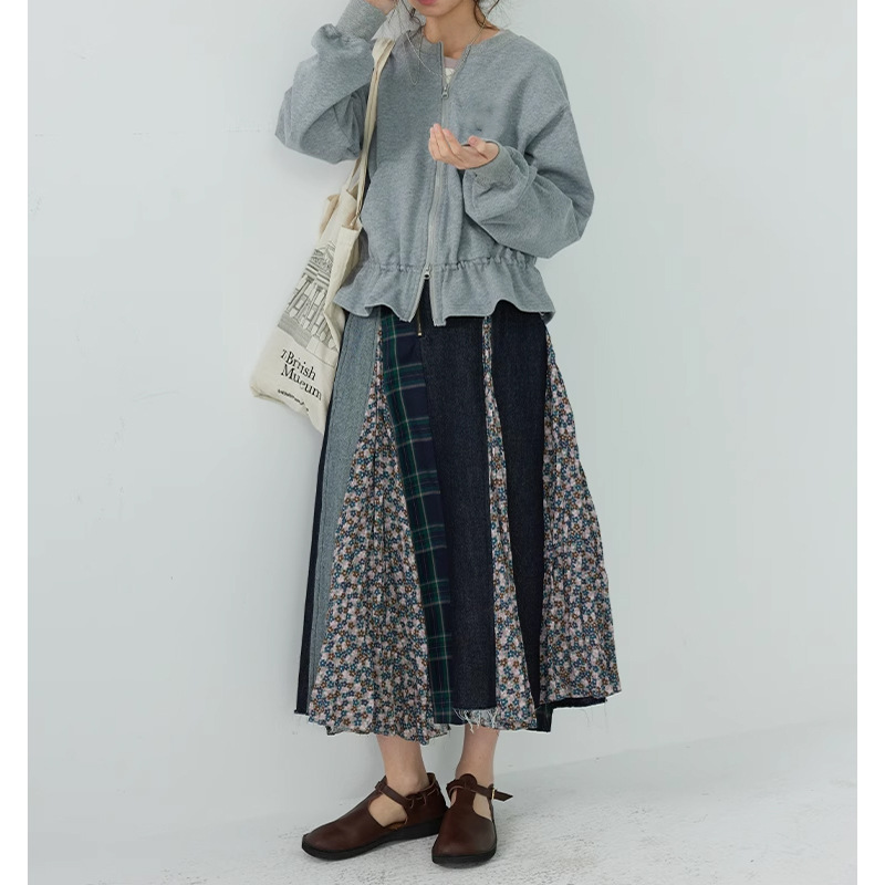 "올리버 지구" 일본 스트레이 스타일 접합 A 라인 스커트 데님 스커트스토어 가기