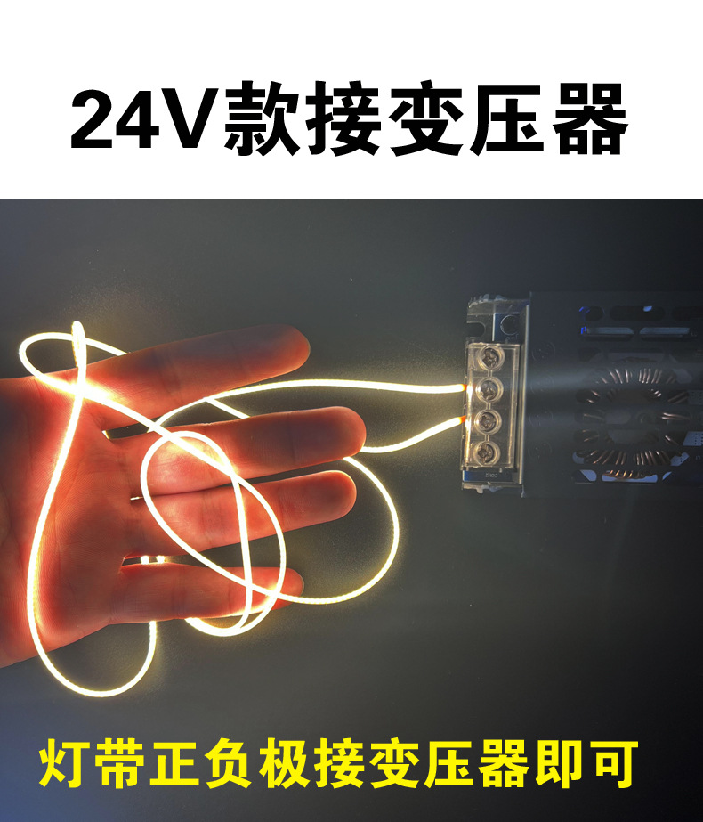 • 2m 24V 평면 180도 발광 COB 조명 스트립 - 3mm 너비, 자체 접착식 뒷면✰★