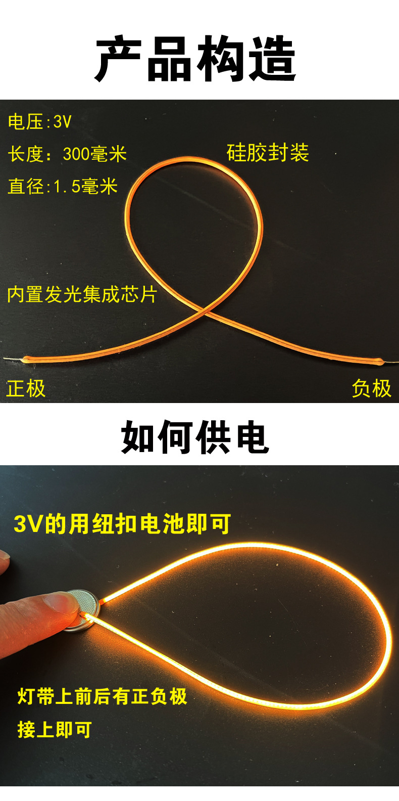 • 3V 1mm 원형 필라멘트 110mm 길이, 양극과 음극이 같은 끝✰★