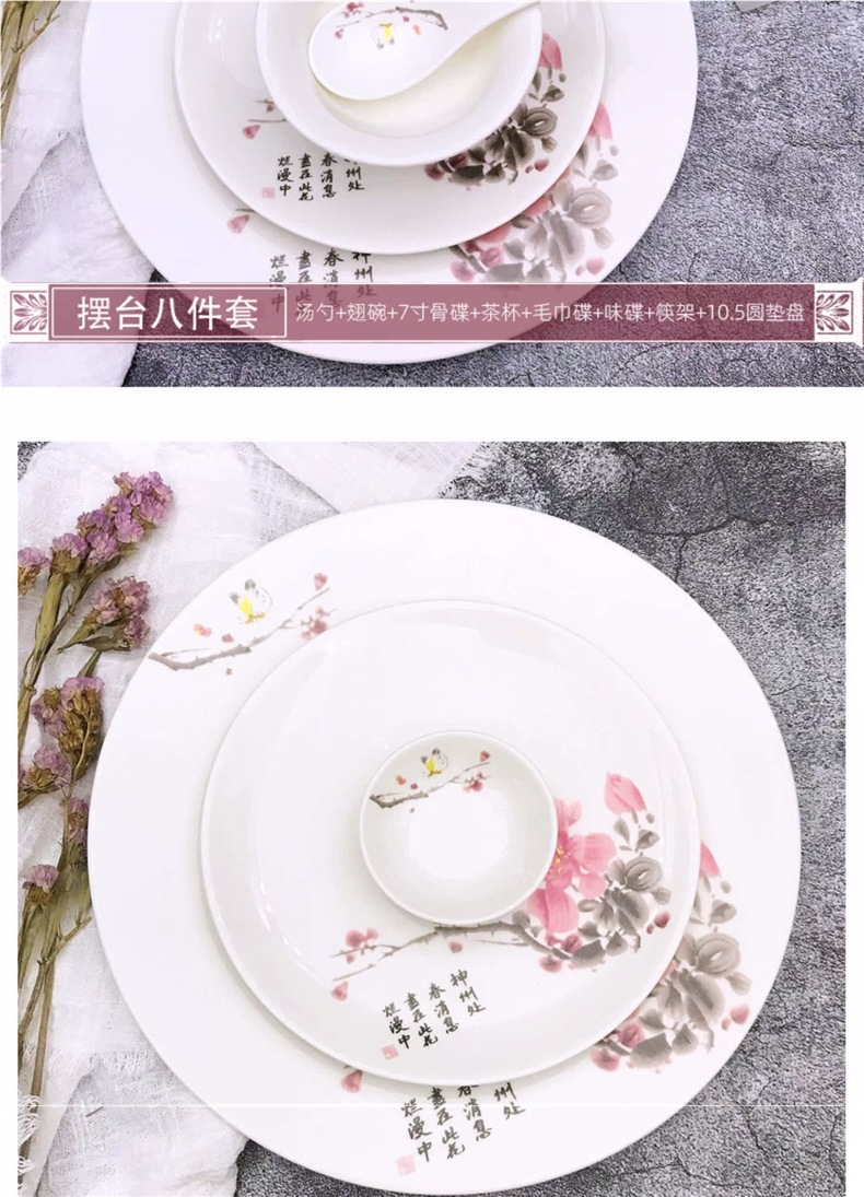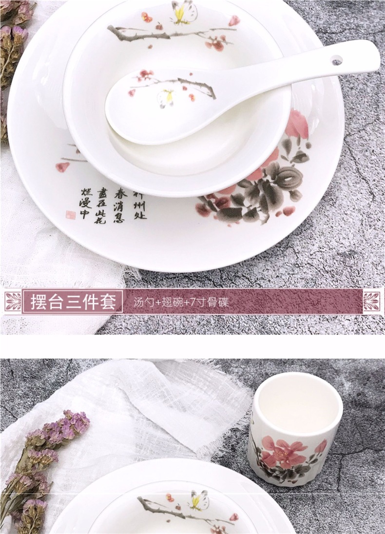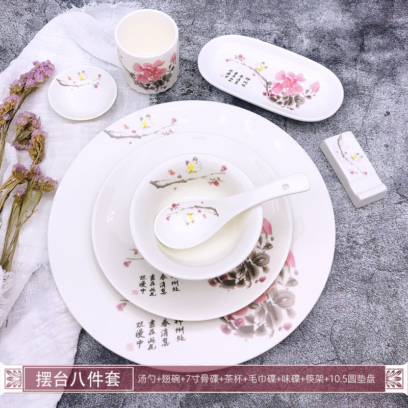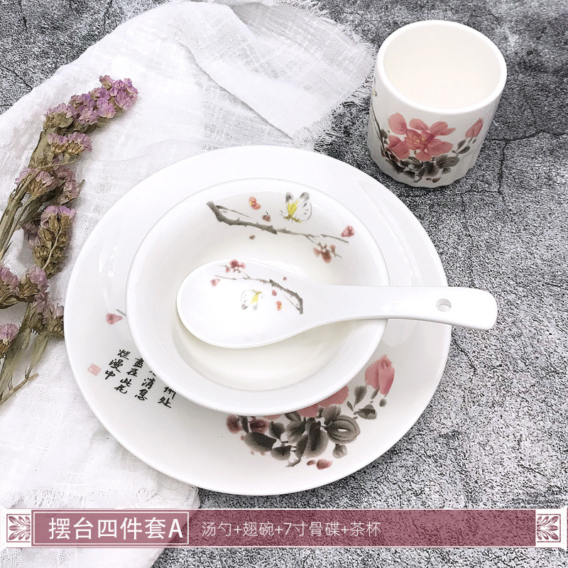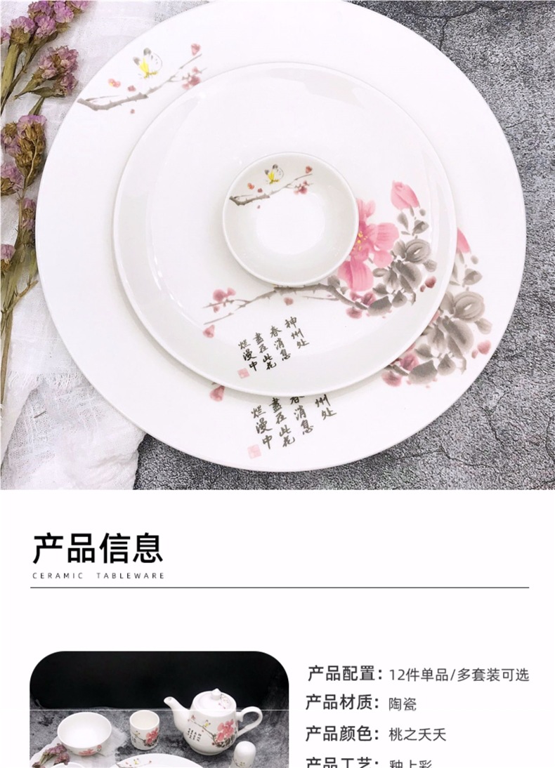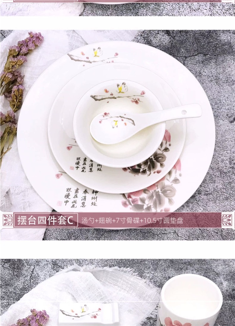 세라믹 테이블 호텔 식기 4 종 세트 호텔 식기 복숭아 꽃 3 종 세트 클럽 박스 접시 요리스토어 가기