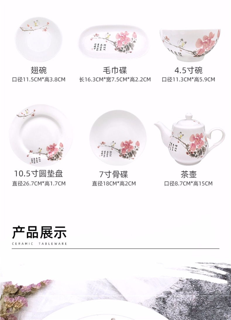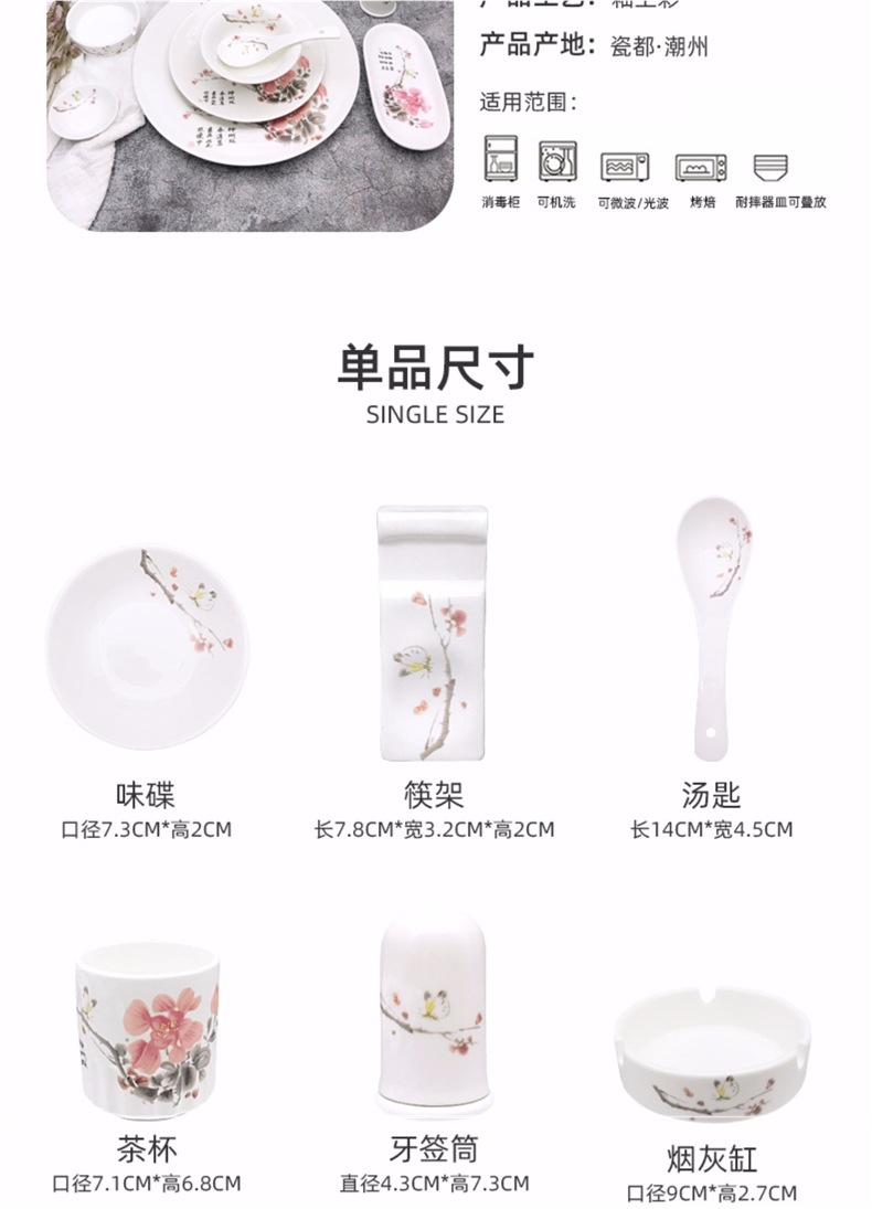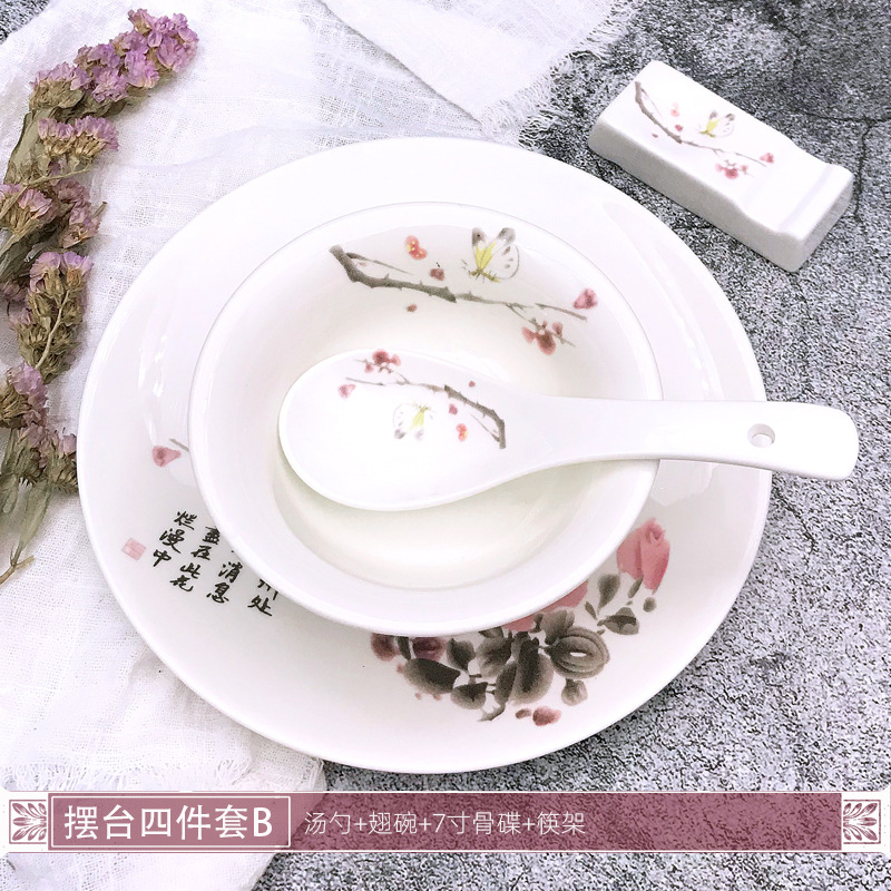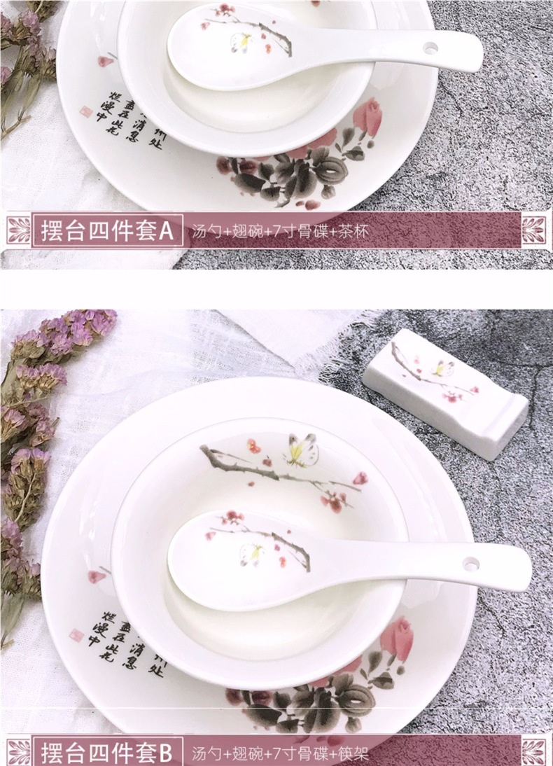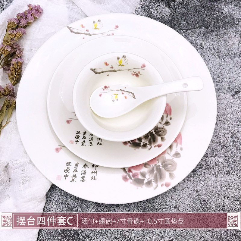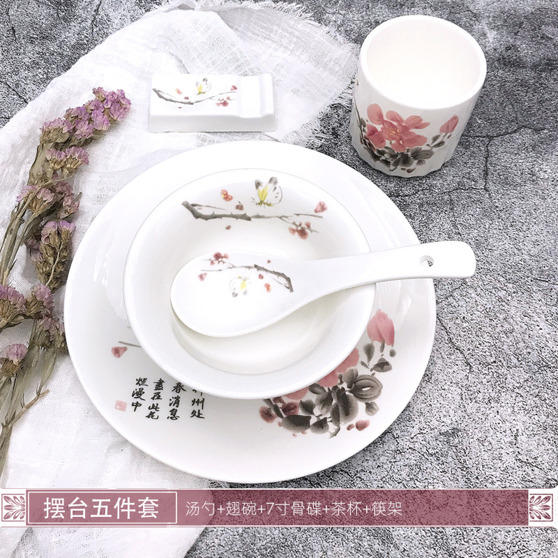 세라믹 테이블 호텔 식기 4 종 세트 호텔 식기 복숭아 꽃 3 종 세트 클럽 박스 접시 요리스토어 가기