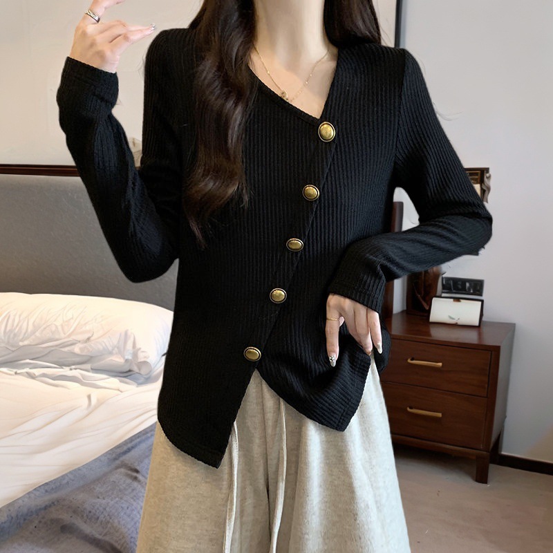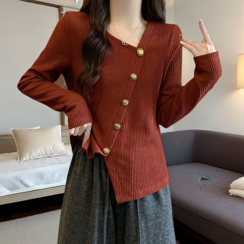플러스 사이즈 여성 셔츠 2024 봄 새로운 서양 스타일 느슨한 디자인 감각 뚱뚱한 사람들 배꼽 덮는베이스 셔츠 슬림 탑