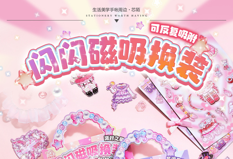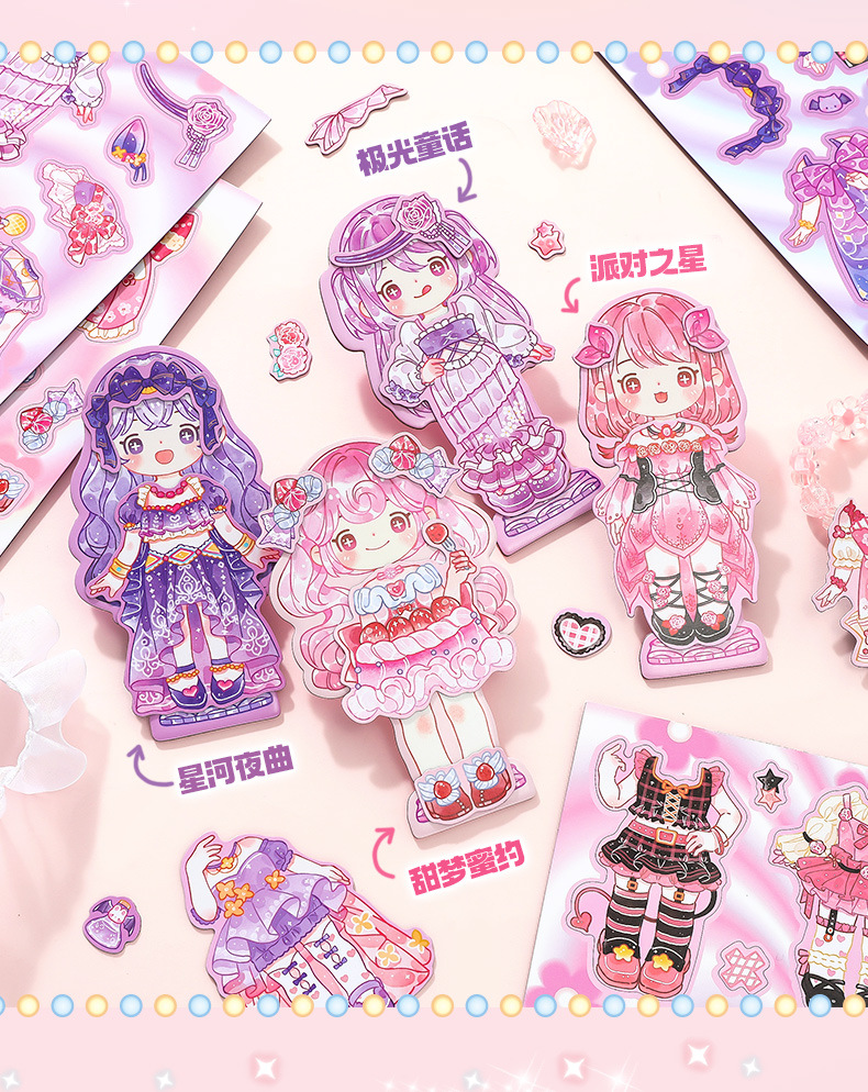 반짝이는 자기 흡입 원피스 업 시리즈 만화 귀여운 소녀의 심장 손 계정 소재 재미있는 수제 DIY 원피스 업 페이스트스토어 가기