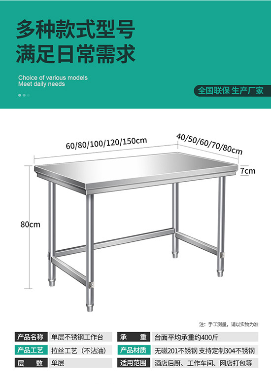 단일 레이어 스테인레스 스틸 작업대 주방 수술대 난로 랙 1 층 재생 테이블 레스토랑 커팅 테이블 테이블 재생 테이블 포장 테이블스토어 가기