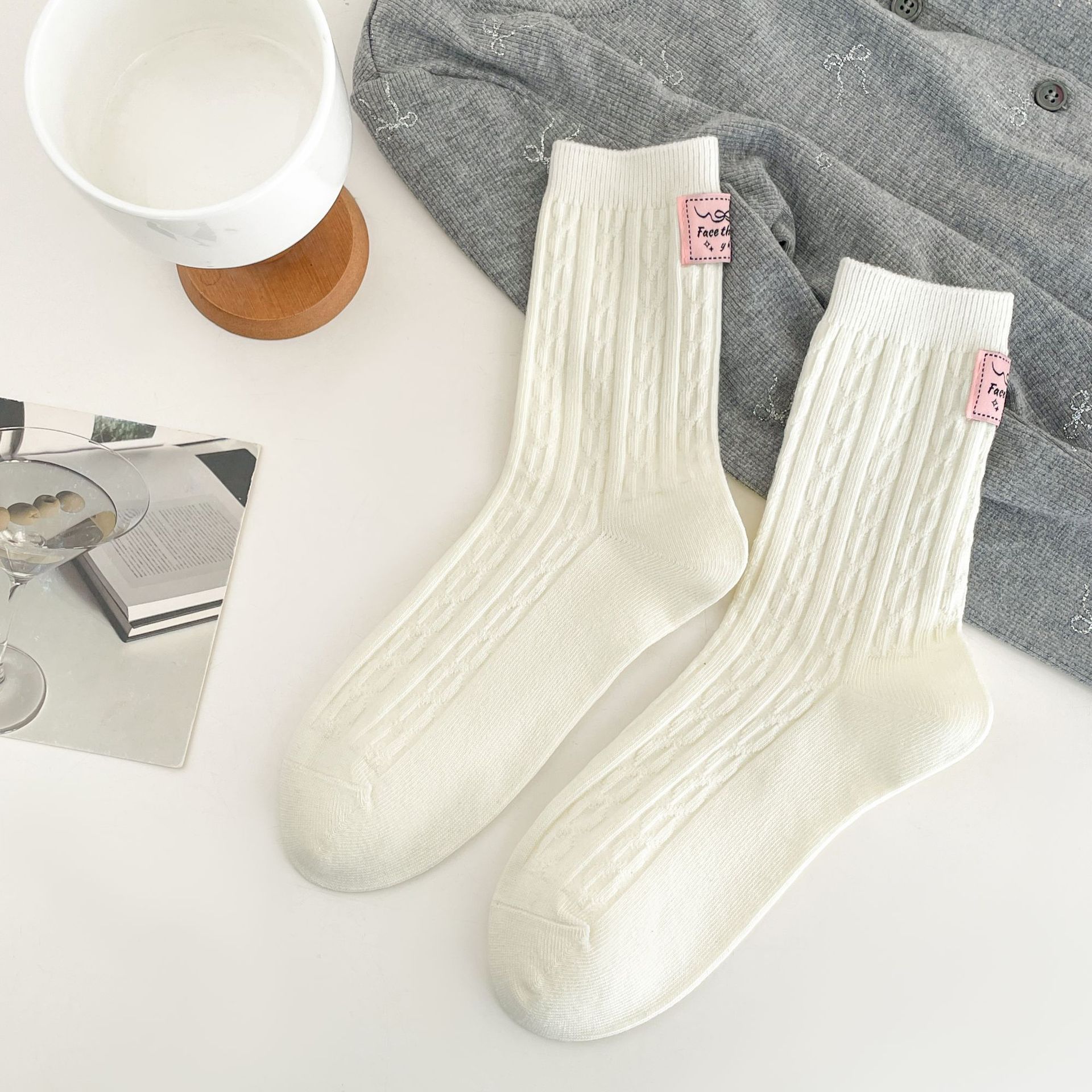 화이트 양말 여자 스택 양말 봄 올 매치 힐 천 ISN 유행 일본 한국 스타일 미드 튜브 양말 여자 대학 스타일