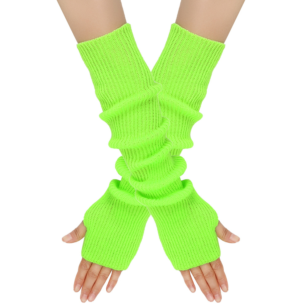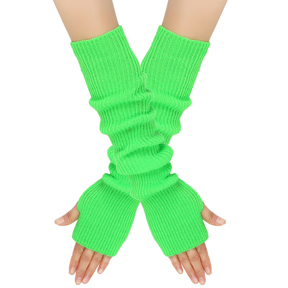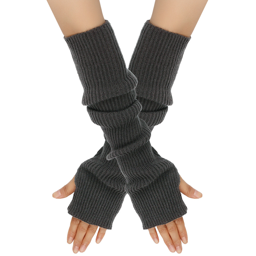 국경 간 가을과 겨울 양모 장갑 여성의 따뜻한 단색 아크릴 계층화 된 팔 커버 긴 손가락 착용 슬리브 손가락 노출 유행스토어 가기