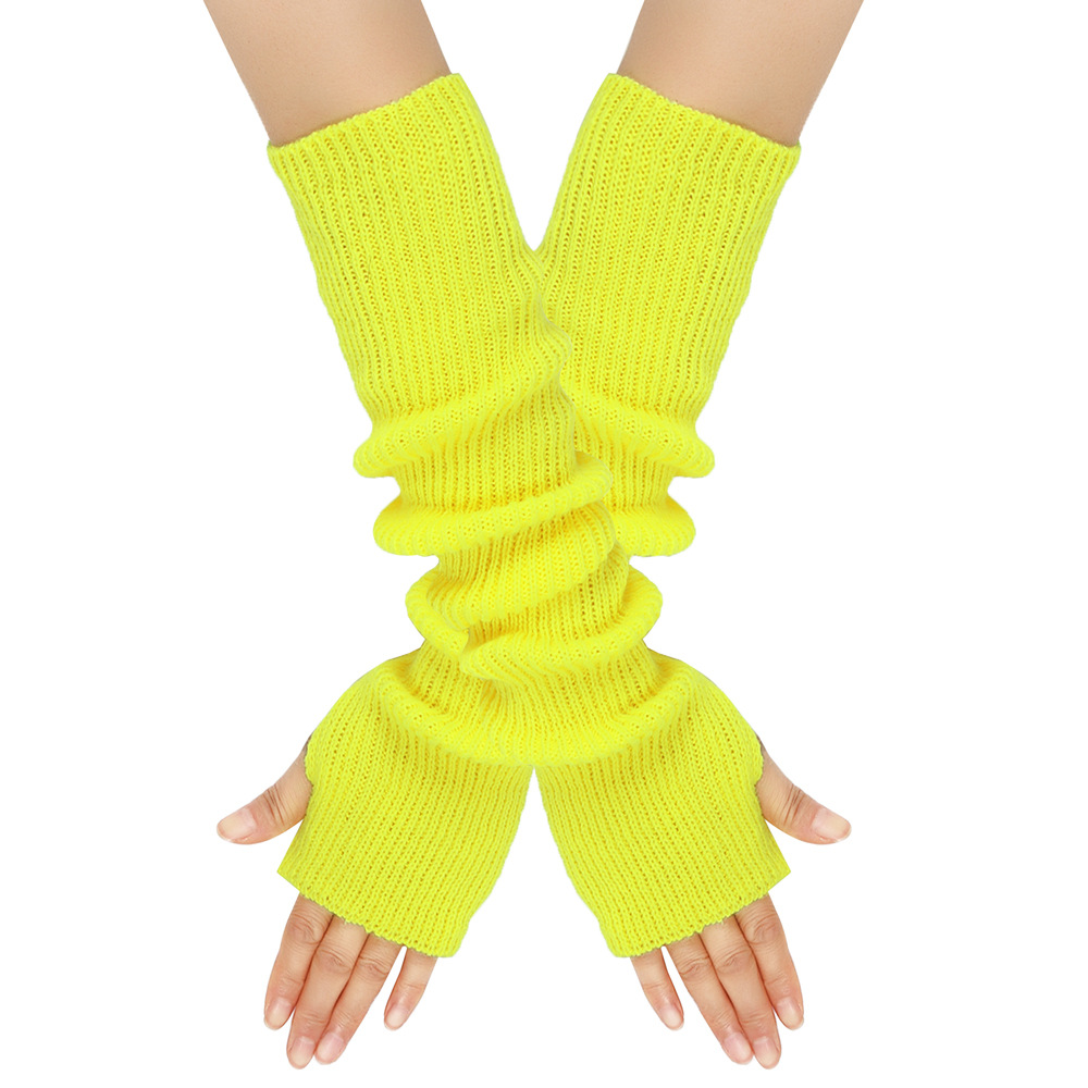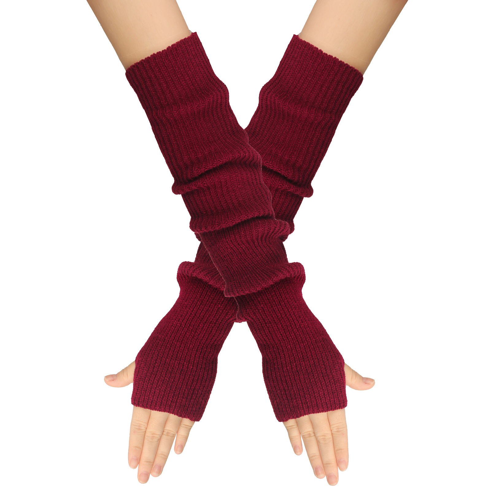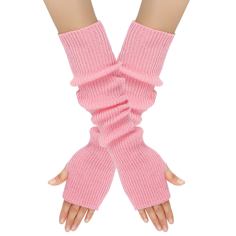 국경 간 가을과 겨울 양모 장갑 여성의 따뜻한 단색 아크릴 계층화 된 팔 커버 긴 손가락 착용 슬리브 손가락 노출 유행