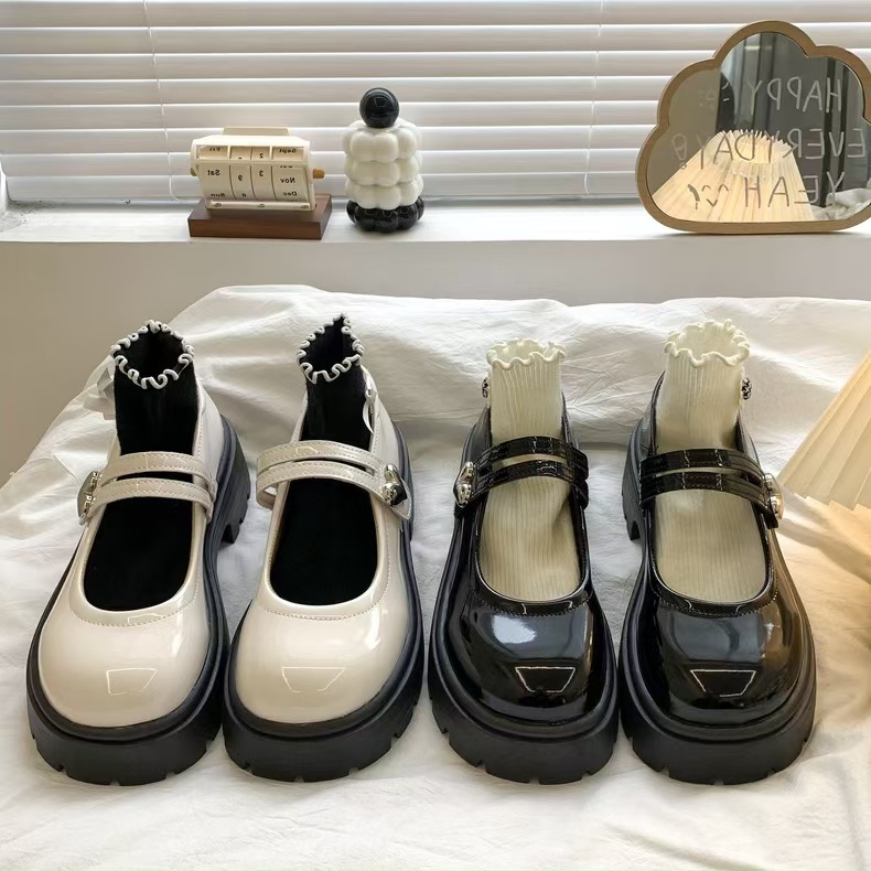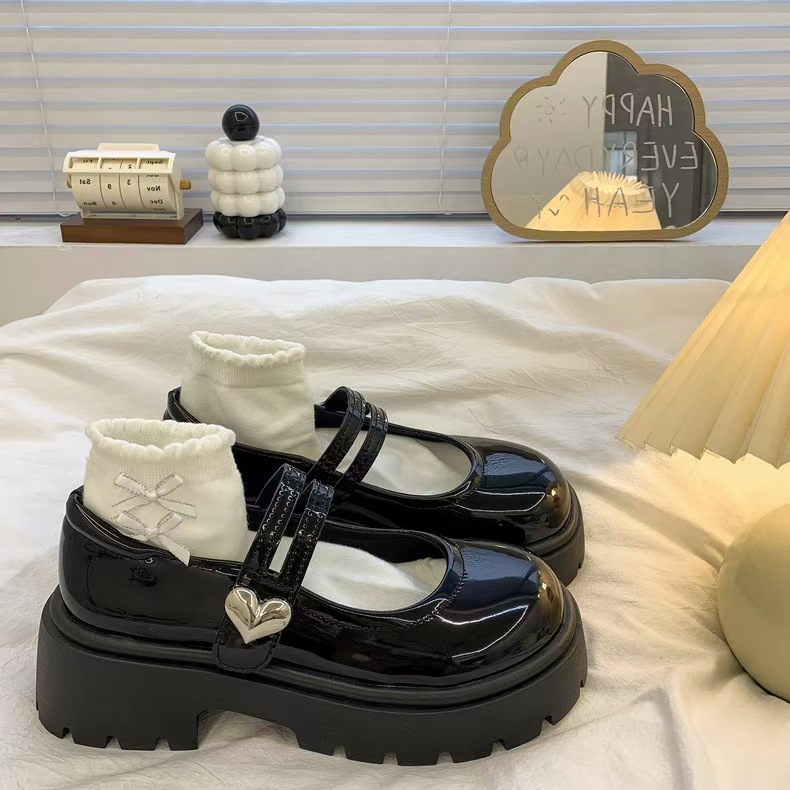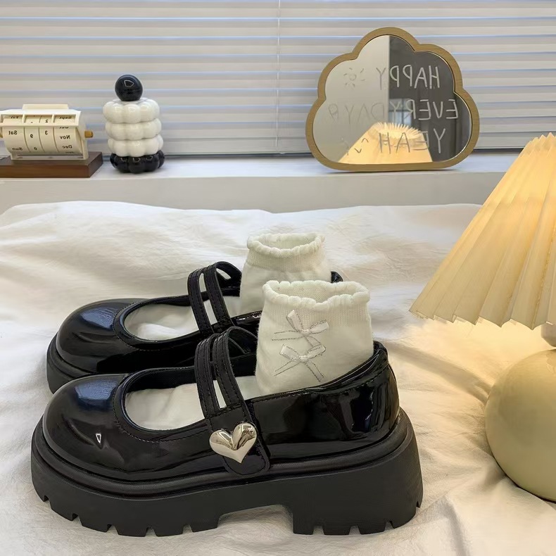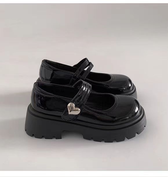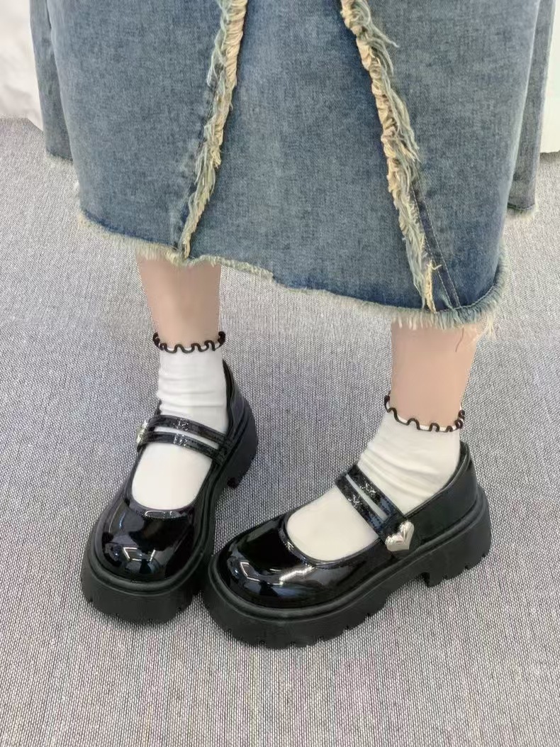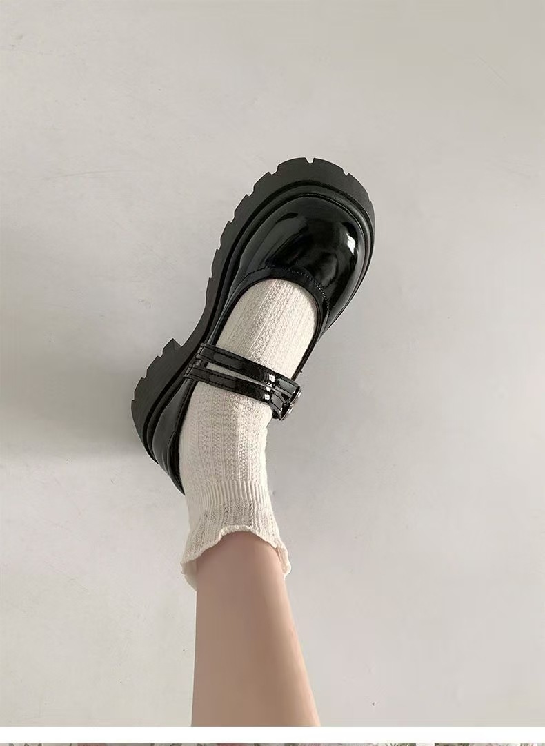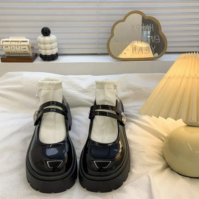검은 둥근 발가락 두꺼운 가죽 신발 여성의 2025 년 여름 새로운 도착 고대 대학 스타일 일본 스타일 스커트 메리 제인 싱글 레이어 신발