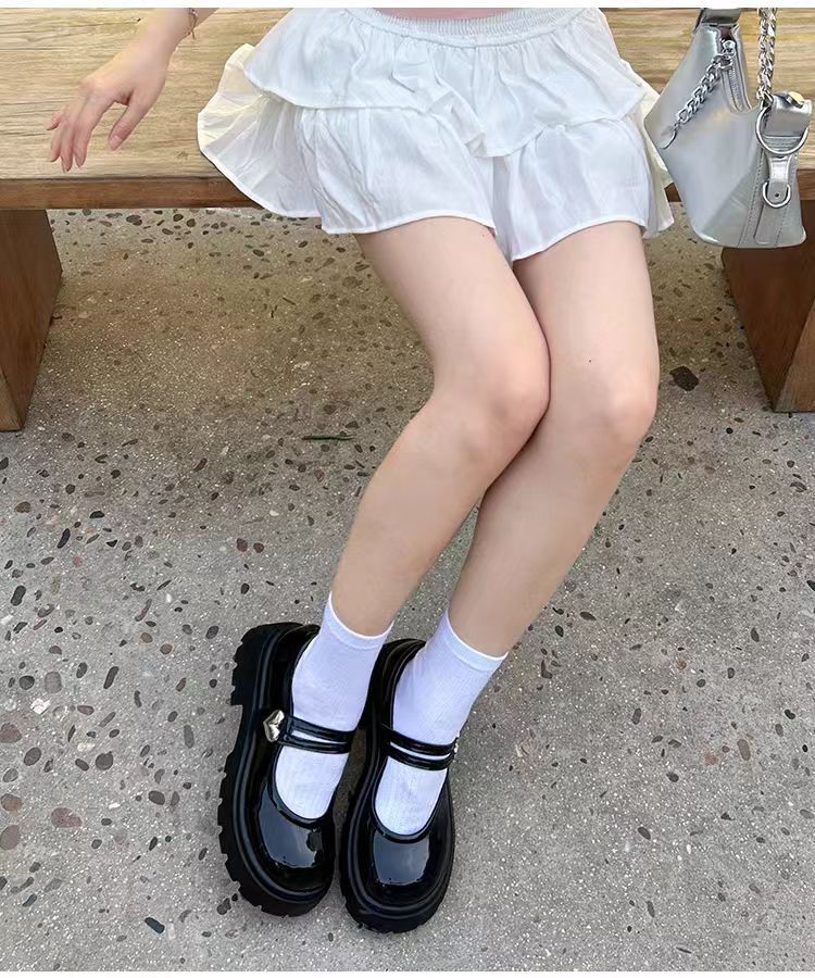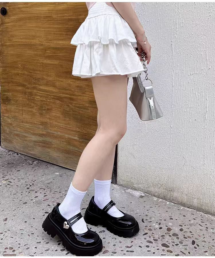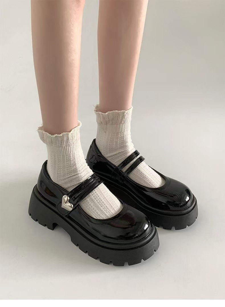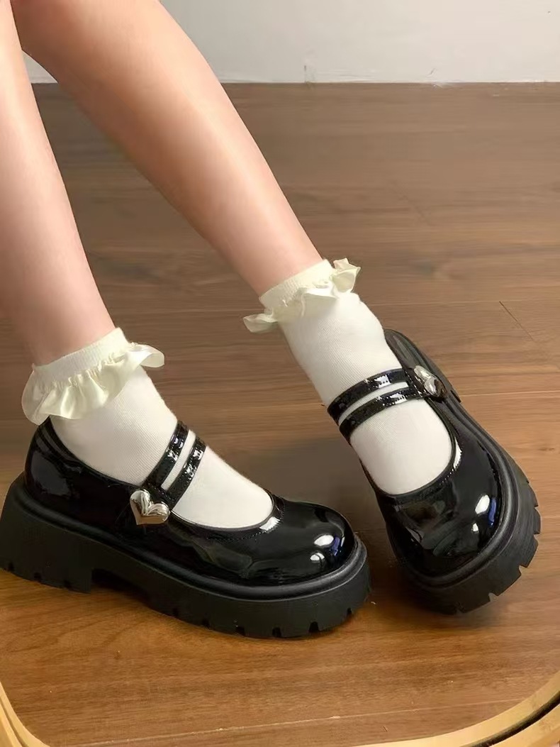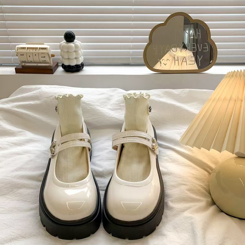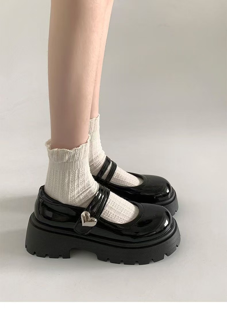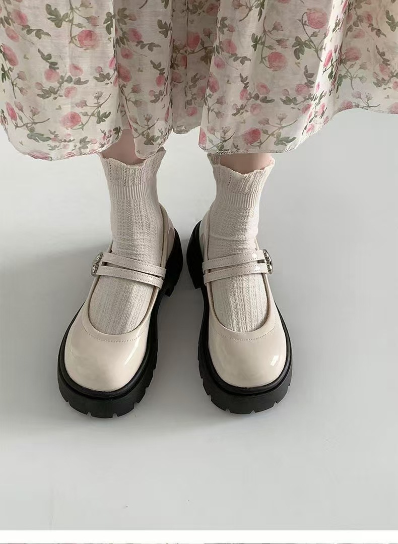 검은 둥근 발가락 두꺼운 가죽 신발 여성의 2025 년 여름 새로운 도착 고대 대학 스타일 일본 스타일 스커트 메리 제인 싱글 레이어 신발