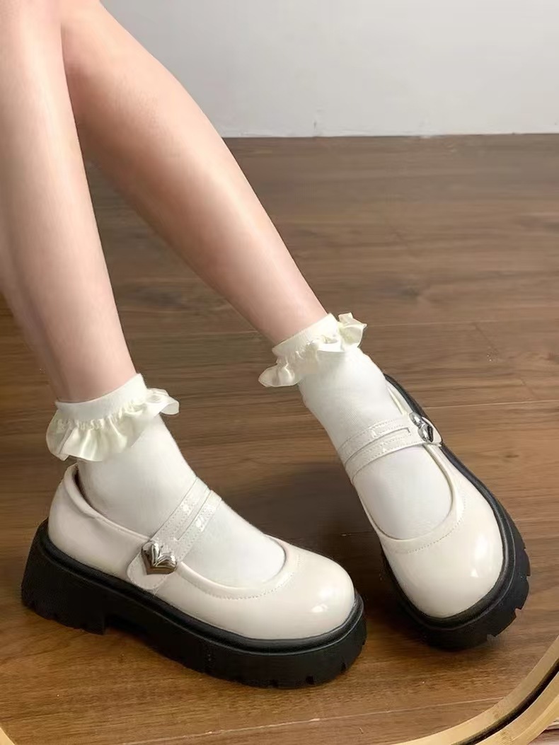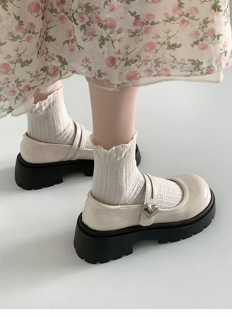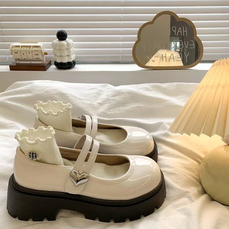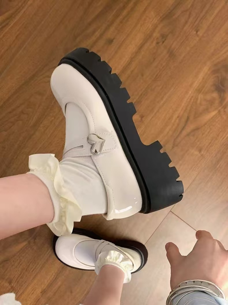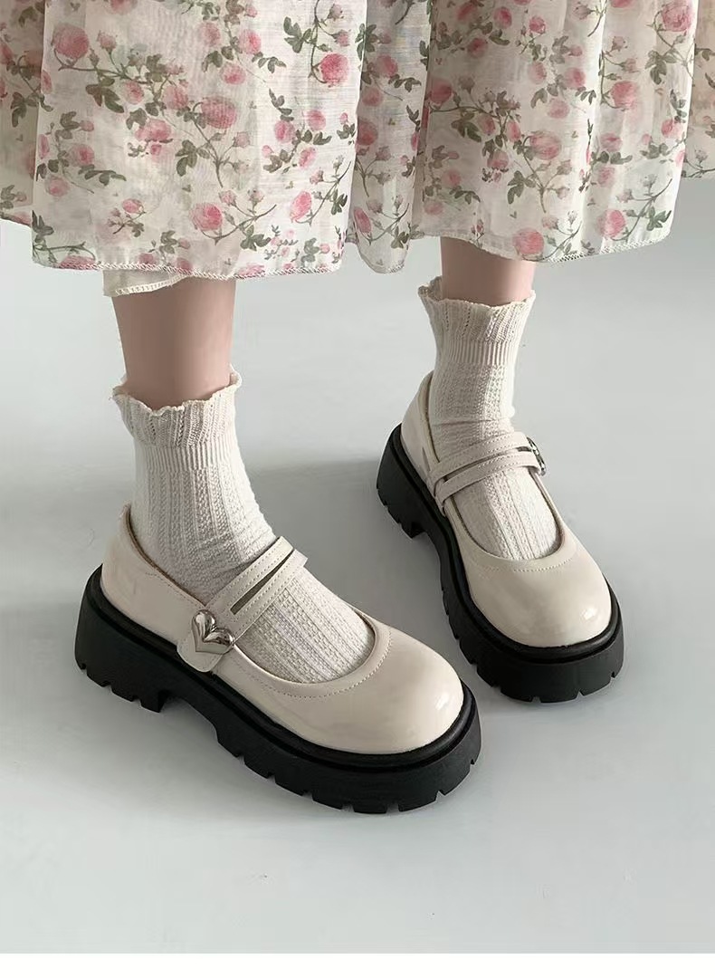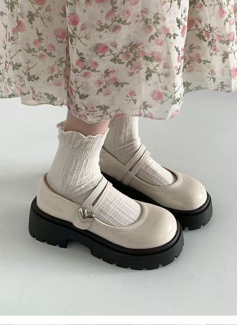 검은 둥근 발가락 두꺼운 가죽 신발 여성의 2025 년 여름 새로운 도착 고대 대학 스타일 일본 스타일 스커트 메리 제인 싱글 레이어 신발