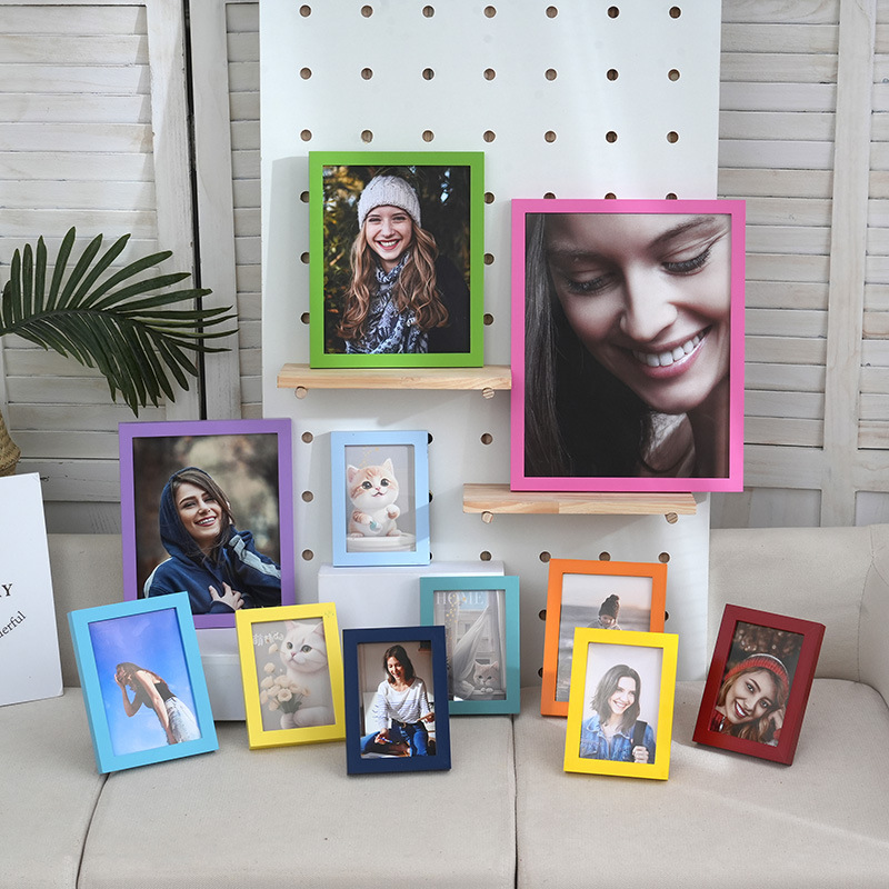 국경 단단한 나무 사진 프레임 세트 테이블 벽 매달려 창조적 인 그림 프레임 사진 벽 나무 사진 프레임 다채로운 사진 프레임스토어 가기