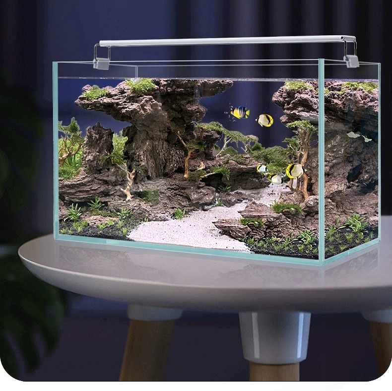 초백색 유리 물고기 탱크 작은 거실 관상용 작은 물고기 풍경 수경 식물 거북이 가정용 사각형 탱크 생태 탱크