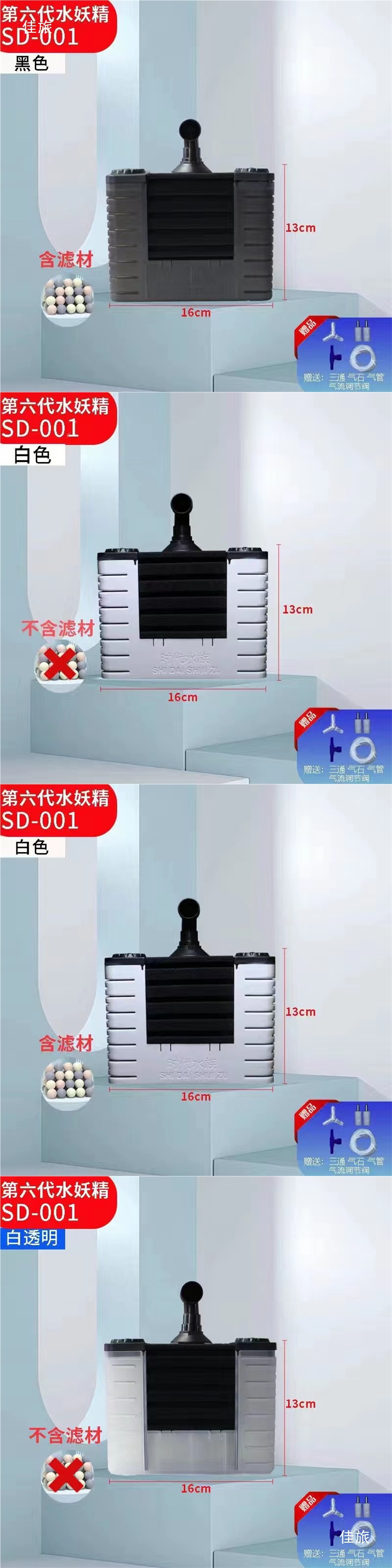 6 세대 어항 물 필터 중소 규모의 안티 가스 리프트 산소 필터 재료 박테리아 하우스