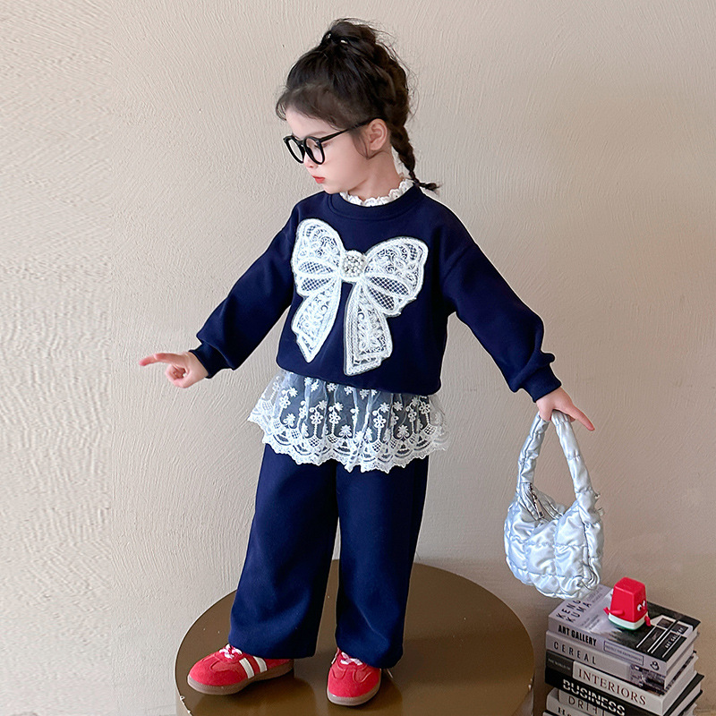 소녀의 봄과 가을 패션 세트 2025 새로운 어린이 인터넷 인기있는 활 땀 아기의 레이스 패션 커튼 바지스토어 가기