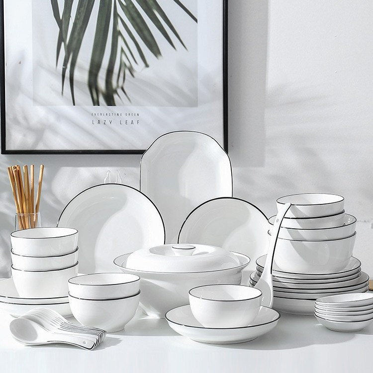 요리와 요리 세트 가정용 그릇 젓가락 세라믹 북유럽 접시 그릇 디너 볼 2024 새로운 식기류 조합 국수 수프 그릇스토어 가기