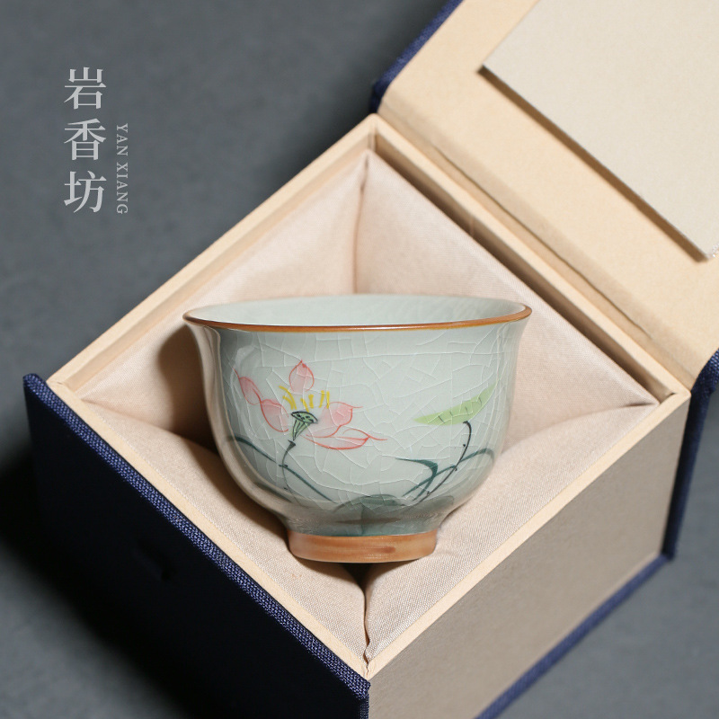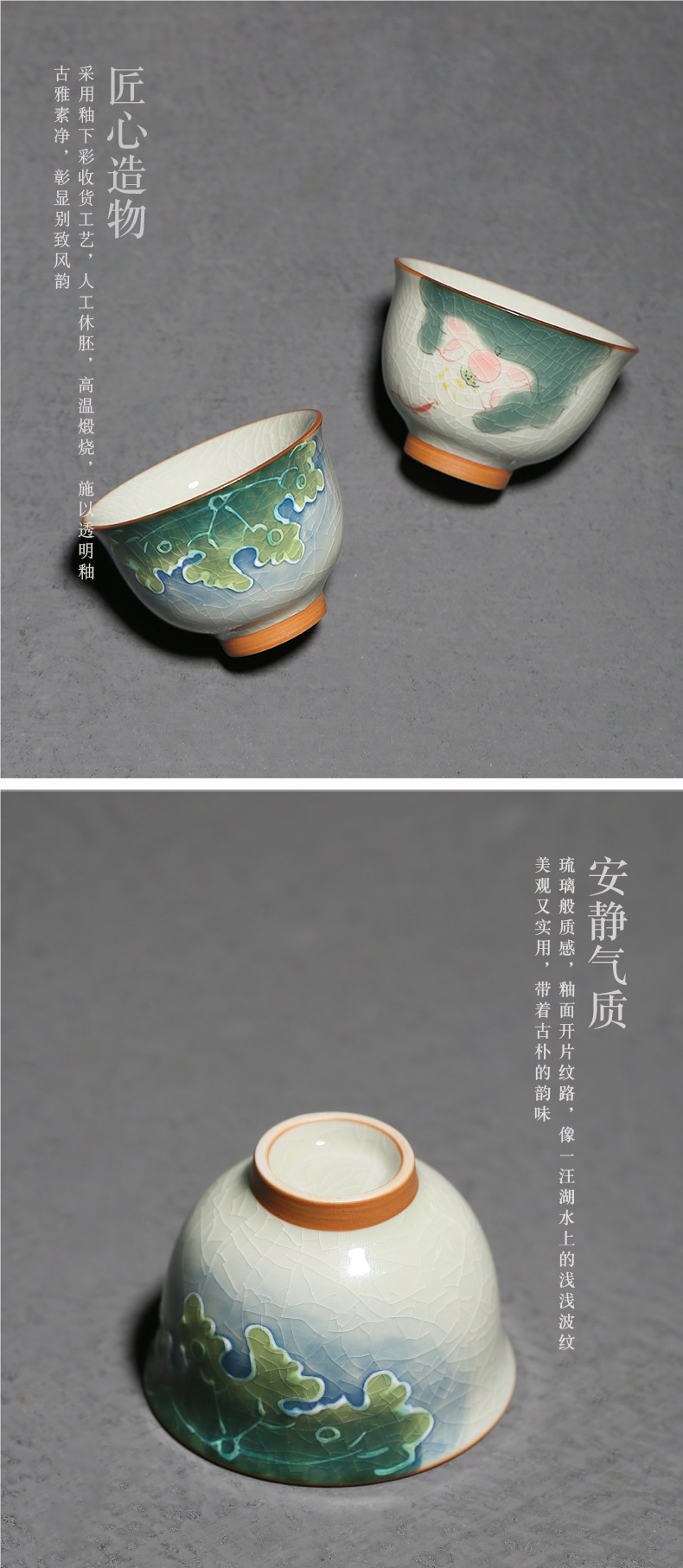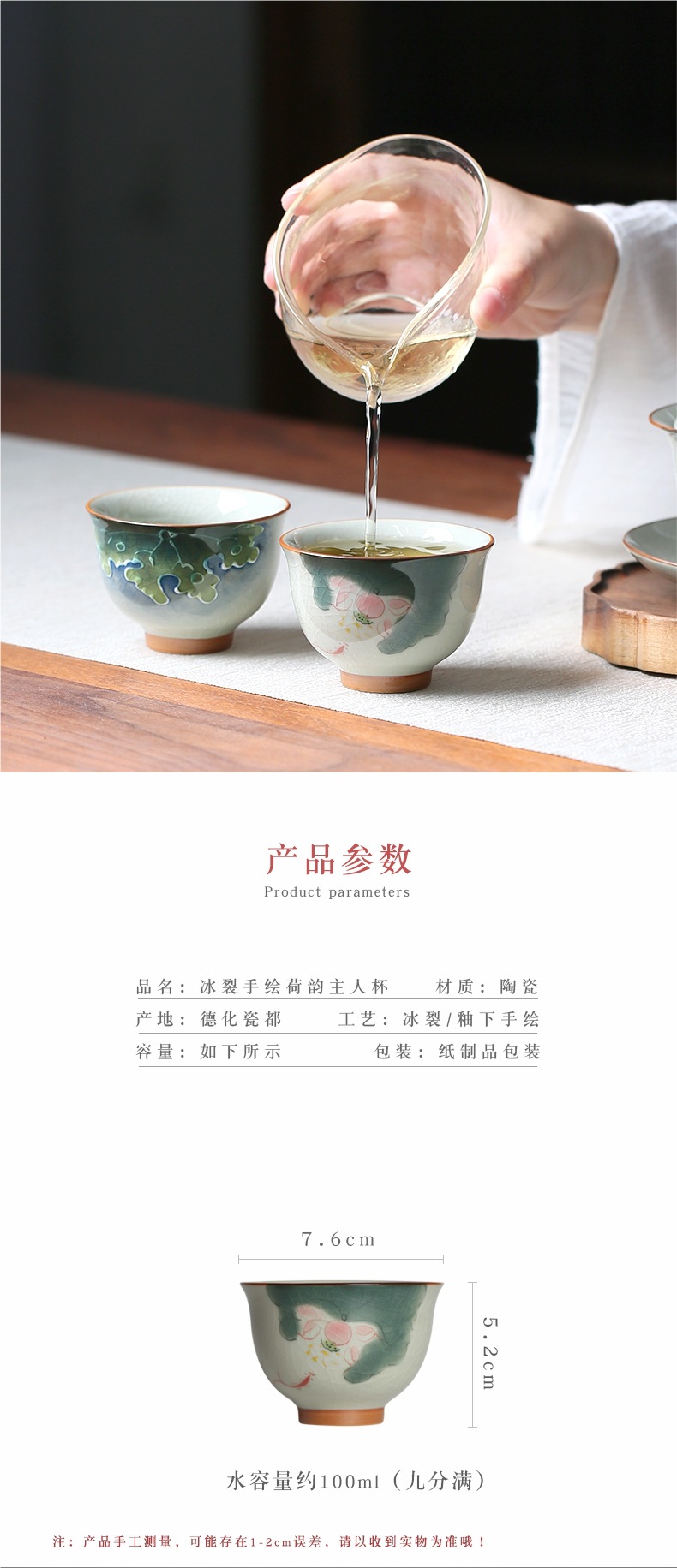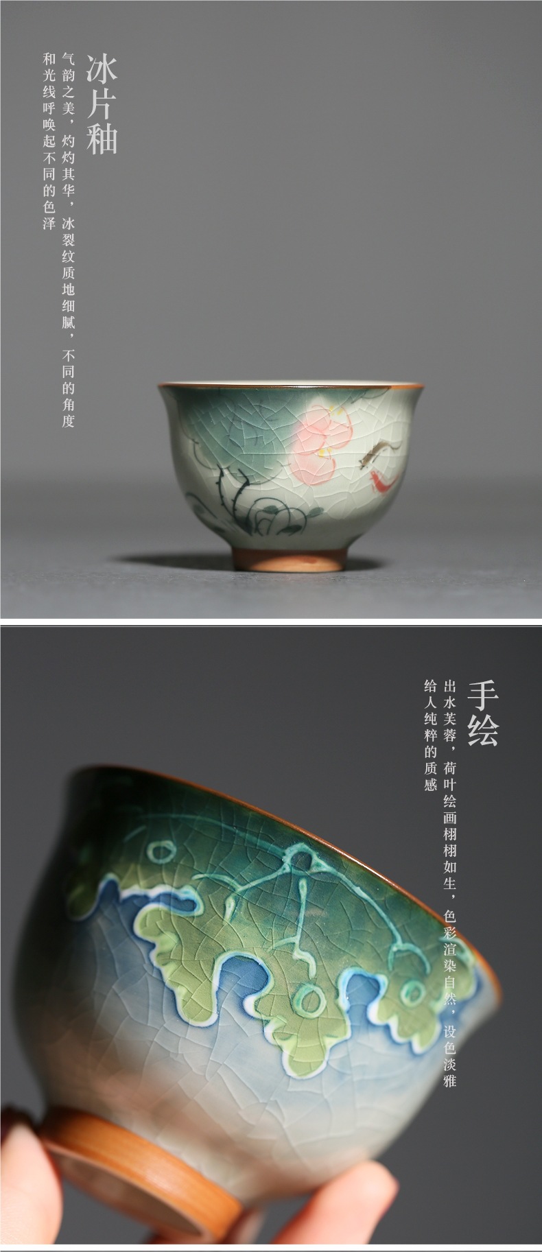 아이스 크래킹 손으로 그린 로터스 대형 티 컵 언더 유약 컬러 세라믹 홈 마스터 컵 중국 스타일 싱글 컵 빈티지