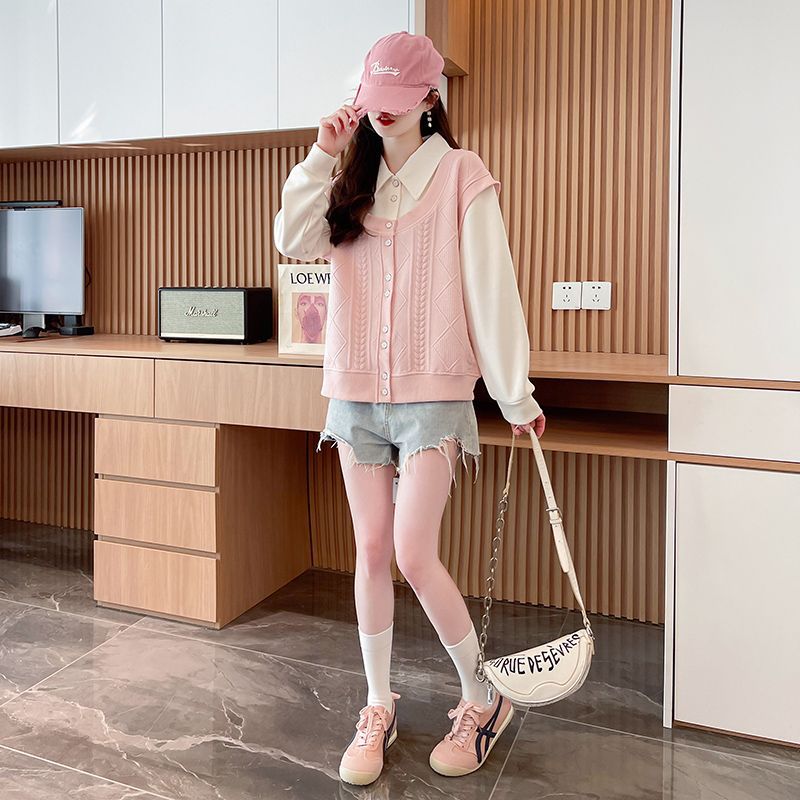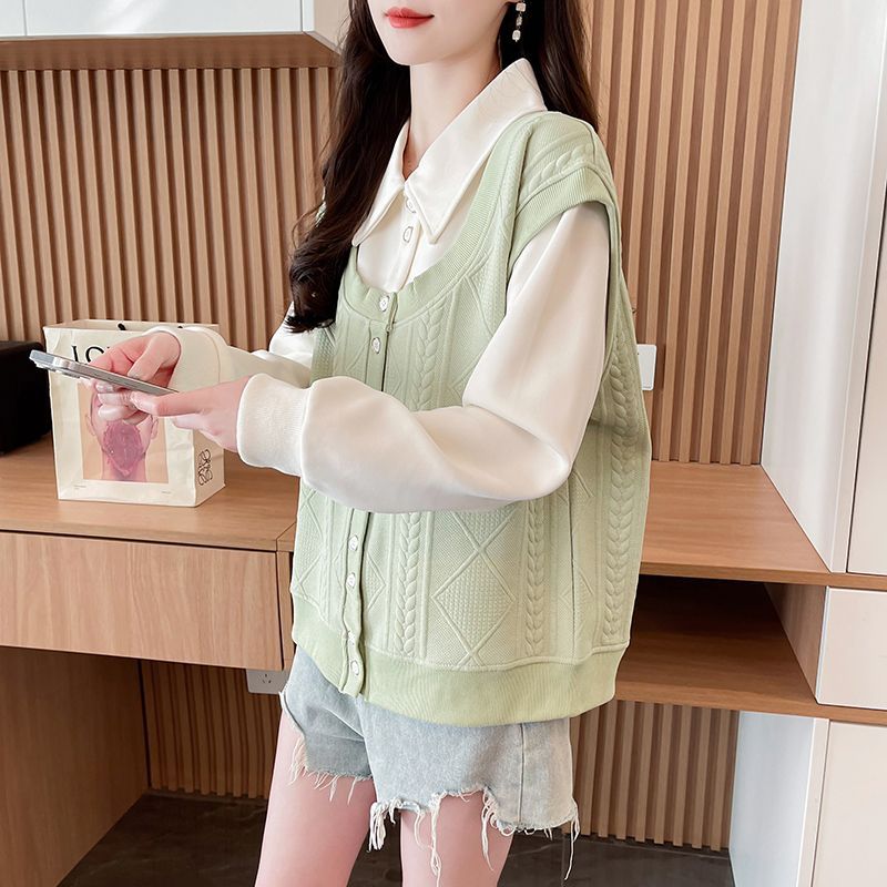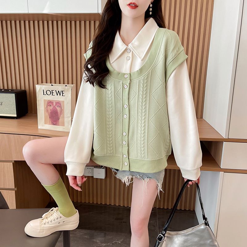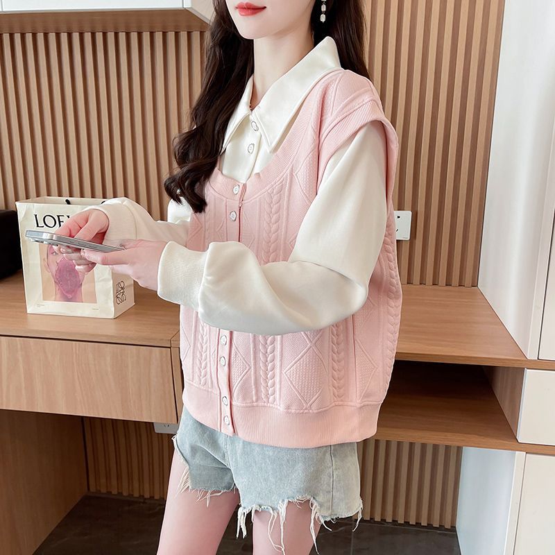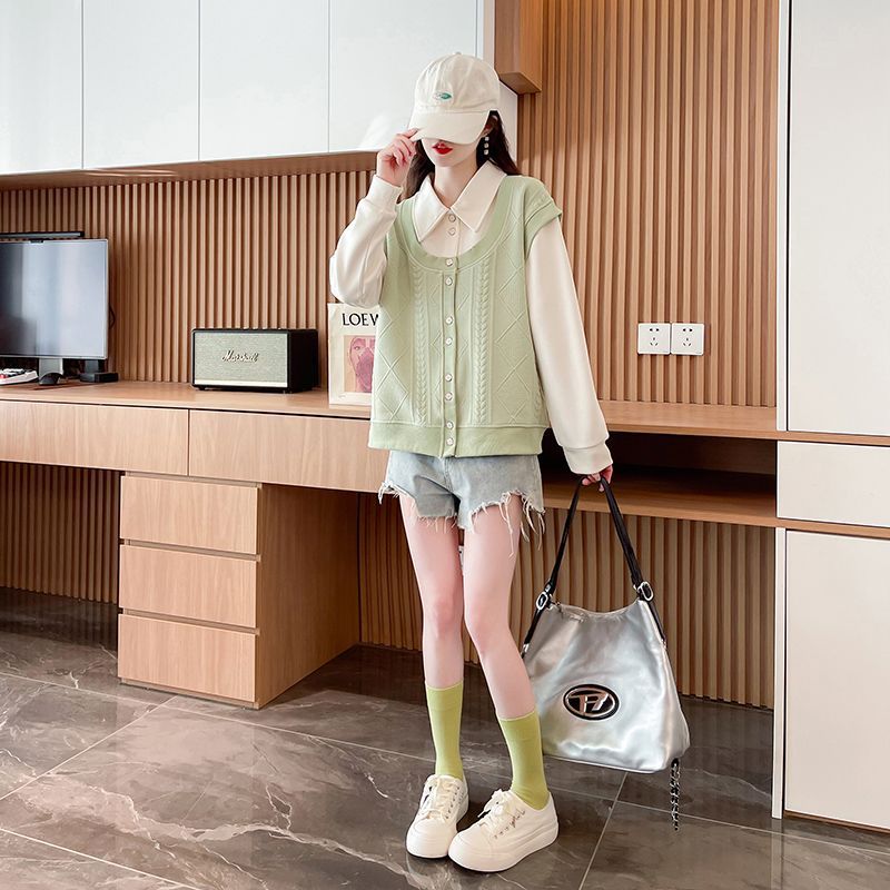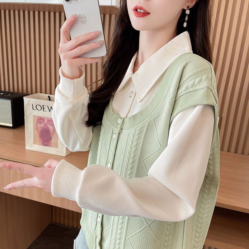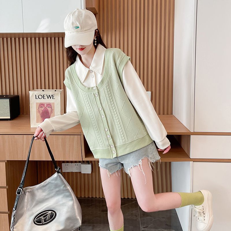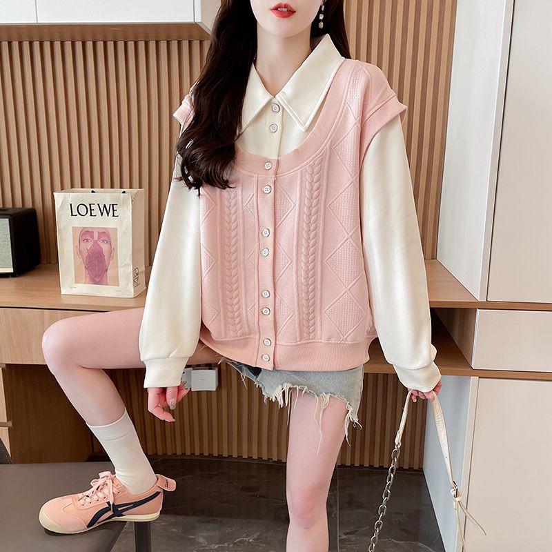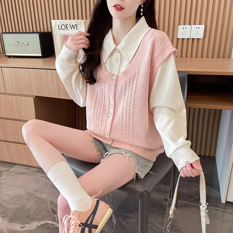 옷깃 폴로 셔츠 스웨터 여성의 2025 새로운 인기 봄과 가을 한국 버전 느슨한 얇은 작은 코트 코트스토어 가기