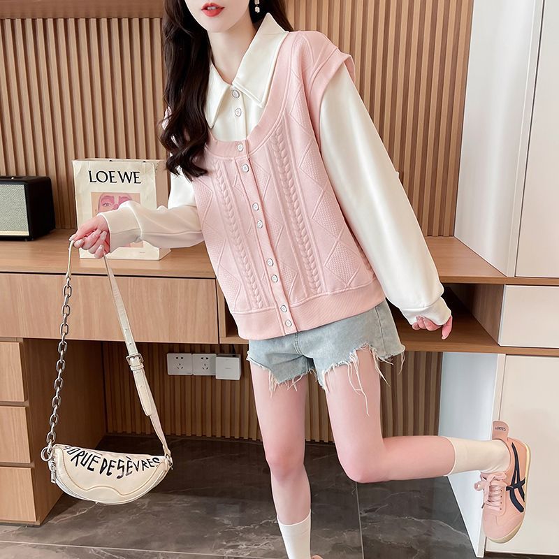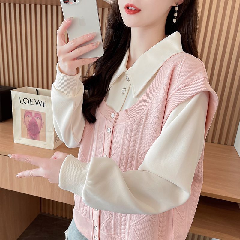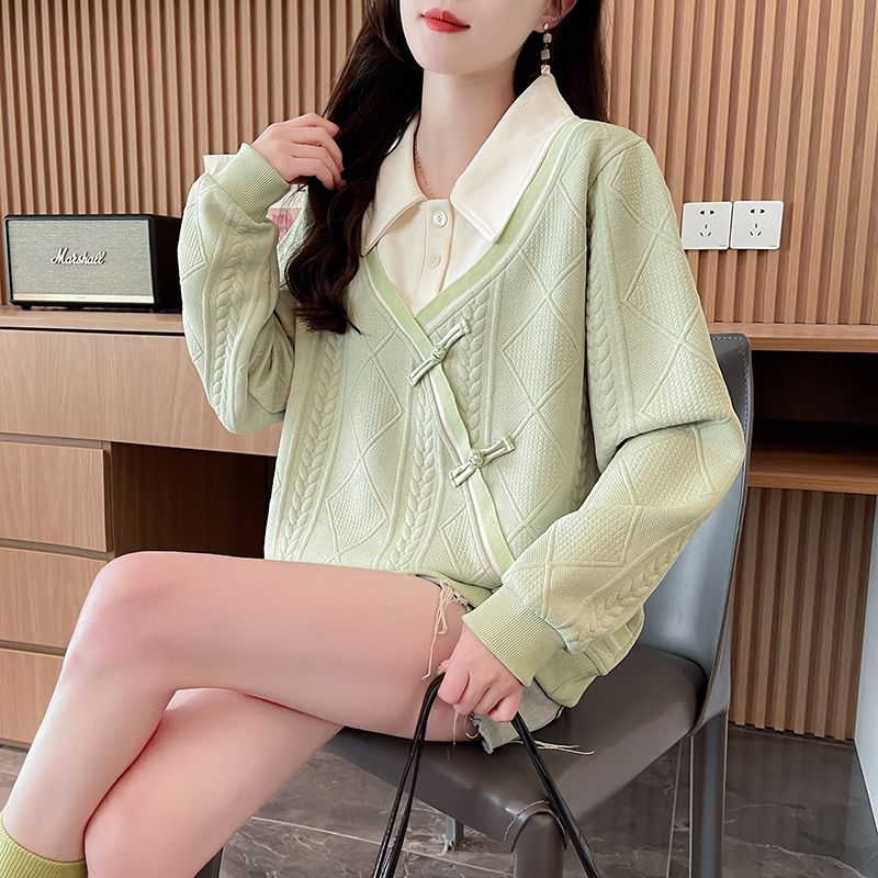 옷깃 폴로 셔츠 스웨터 여성의 2025 새로운 인기 봄과 가을 한국 버전 느슨한 얇은 작은 코트 코트