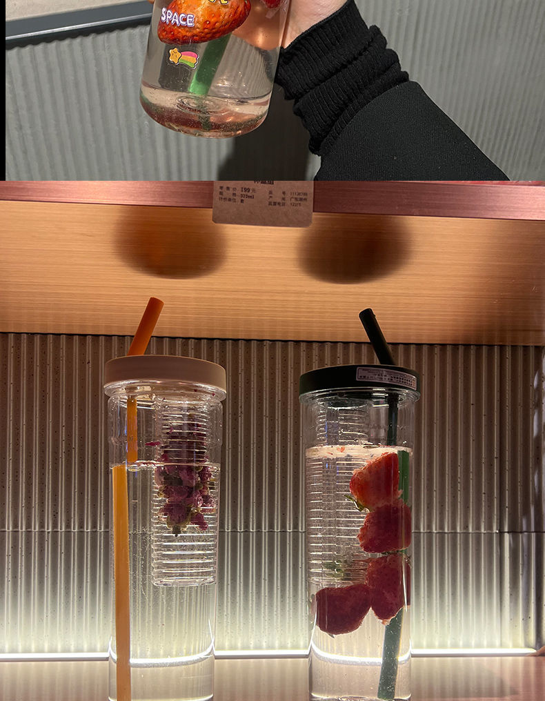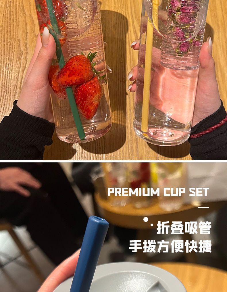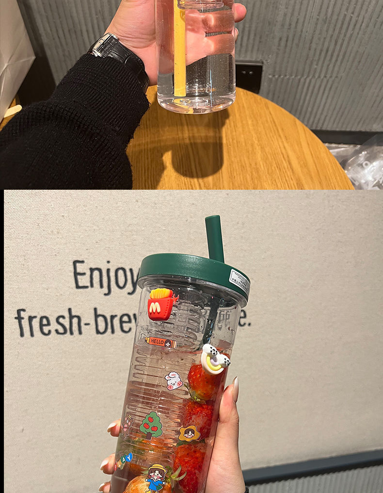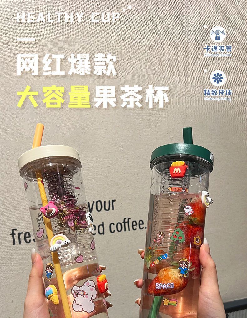 Ins 워터 컵 여자 높은 색상 가치 대용량 밀짚 컵 레몬 필터 핸디 컵 과일 티 컵 주스 컵스토어 가기
