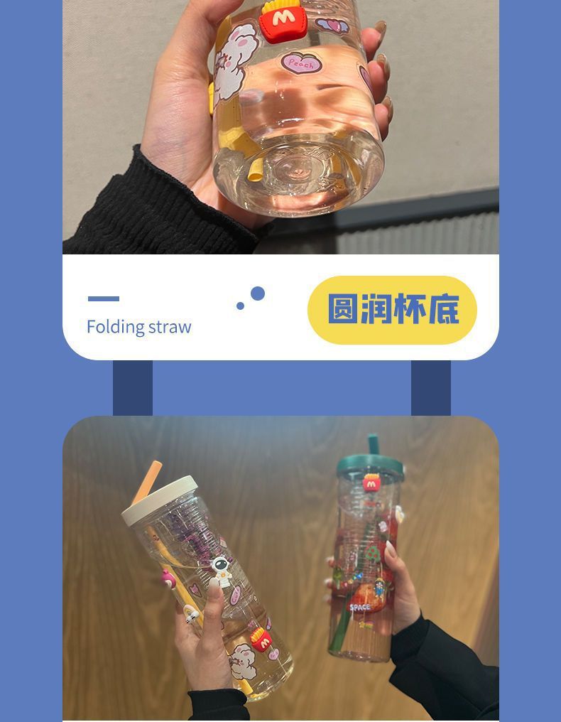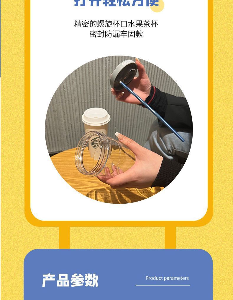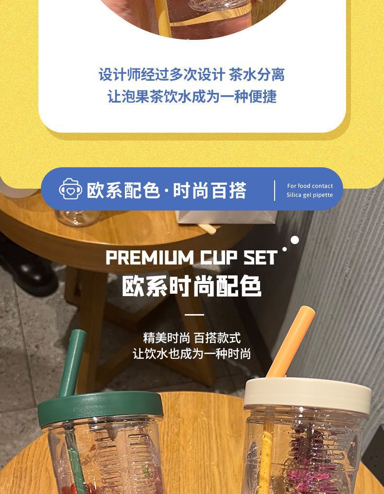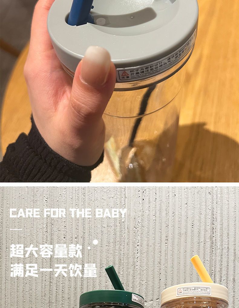 Ins 워터 컵 여자 높은 색상 가치 대용량 밀짚 컵 레몬 필터 핸디 컵 과일 티 컵 주스 컵스토어 가기