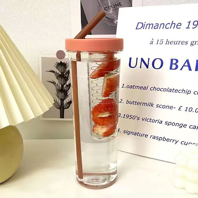 Ins 워터 컵 여자 높은 색상 가치 대용량 밀짚 컵 레몬 필터 핸디 컵 과일 티 컵 주스 컵