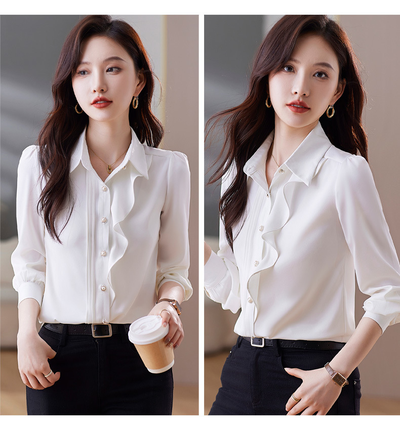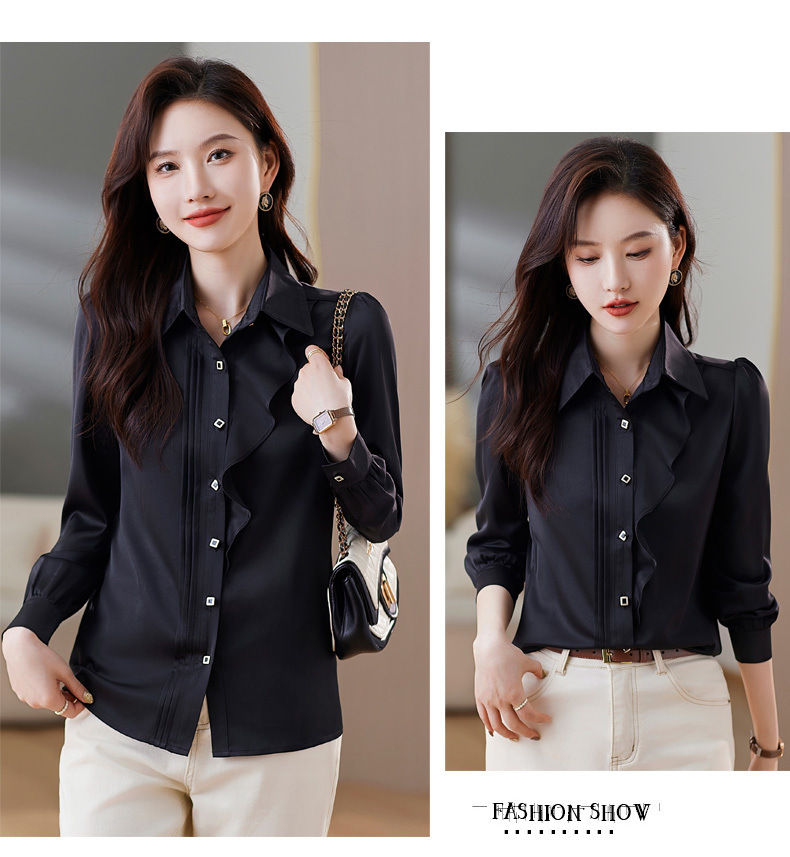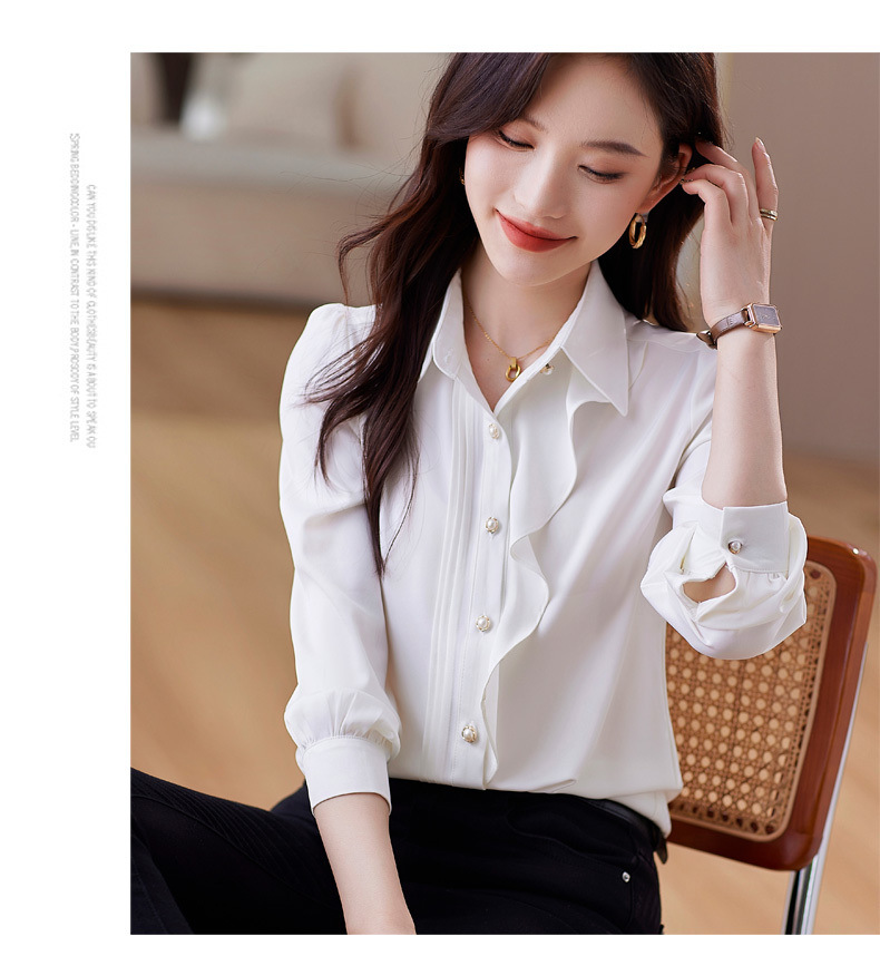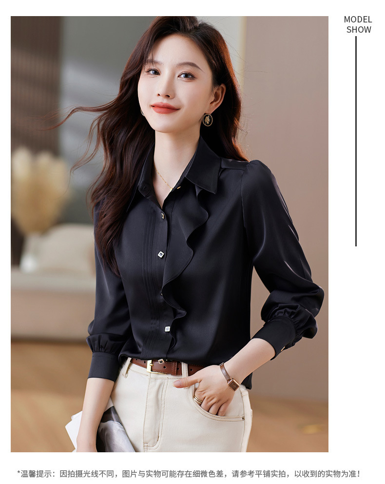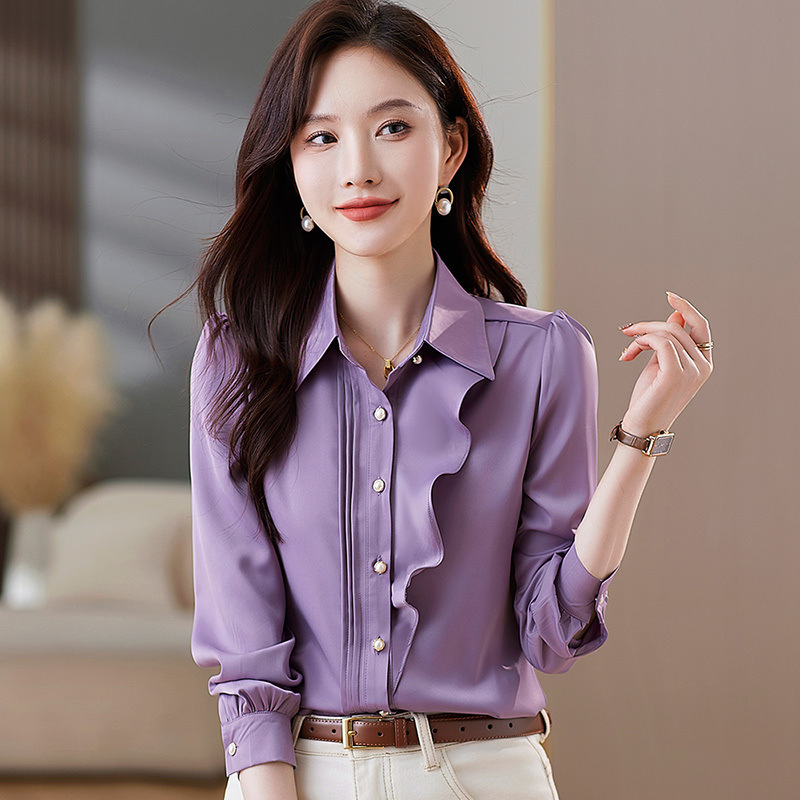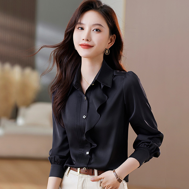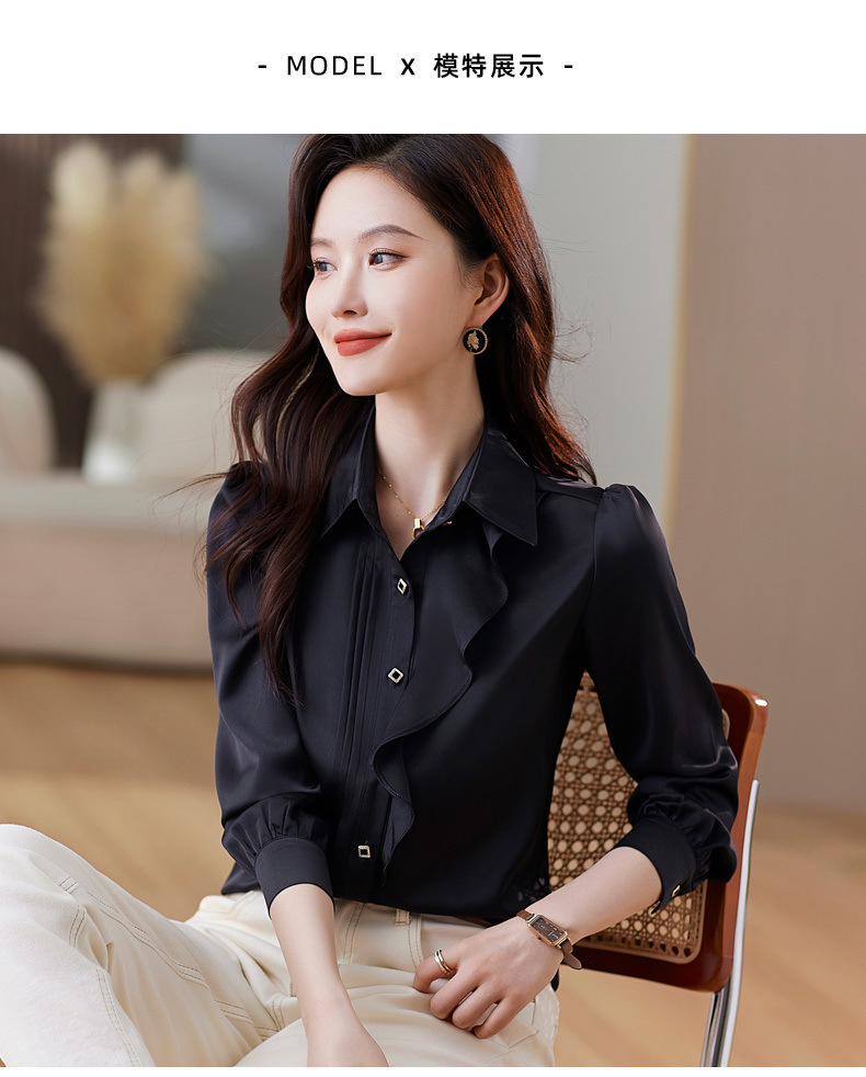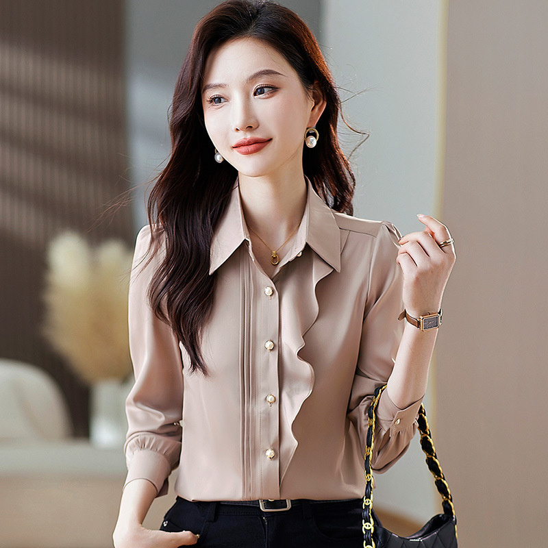 모조 실크 주름진 단색 우아한 셔츠 여성용 긴팔 2024 봄과 가을 새로운 세련된 패셔블 캐주얼 탑 여성스토어 가기